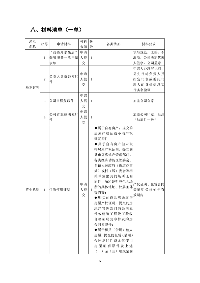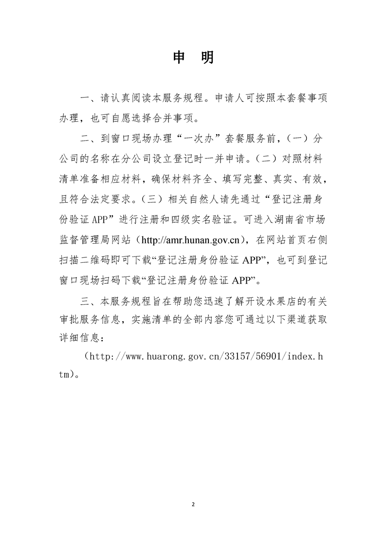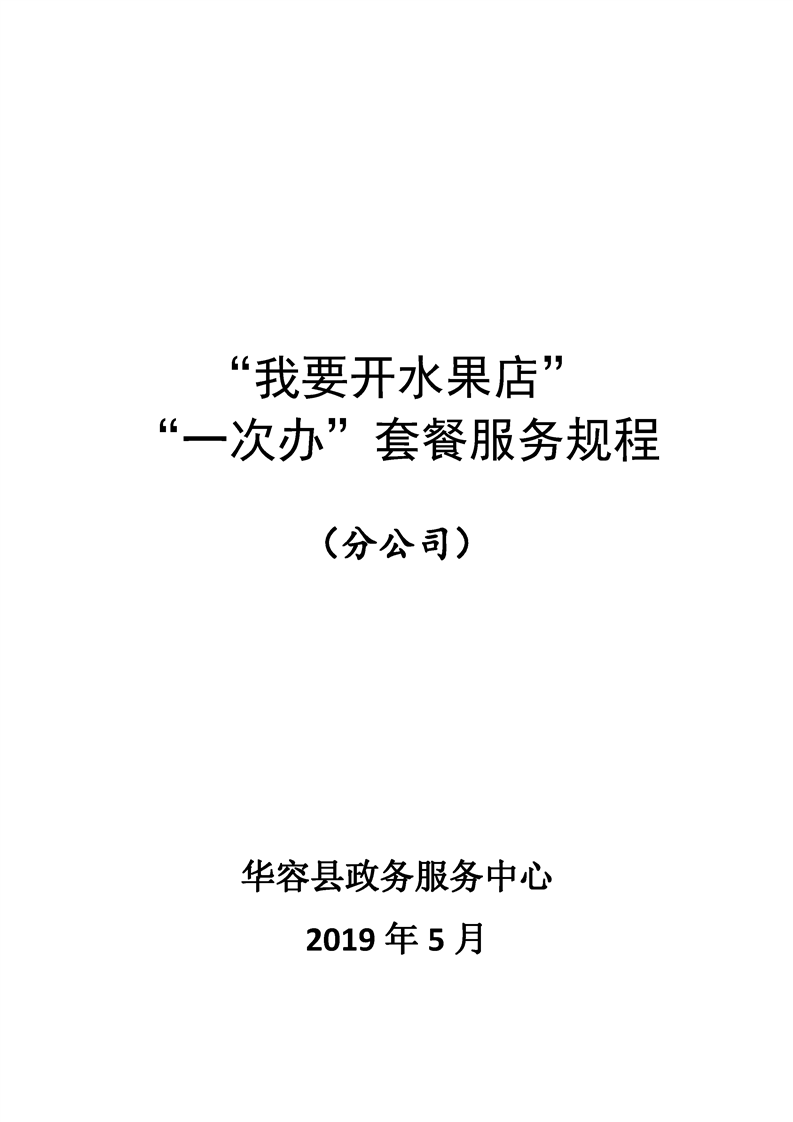 “我要开水果店” “一次办”套餐服务规程 (分公司)