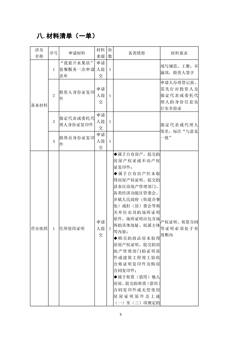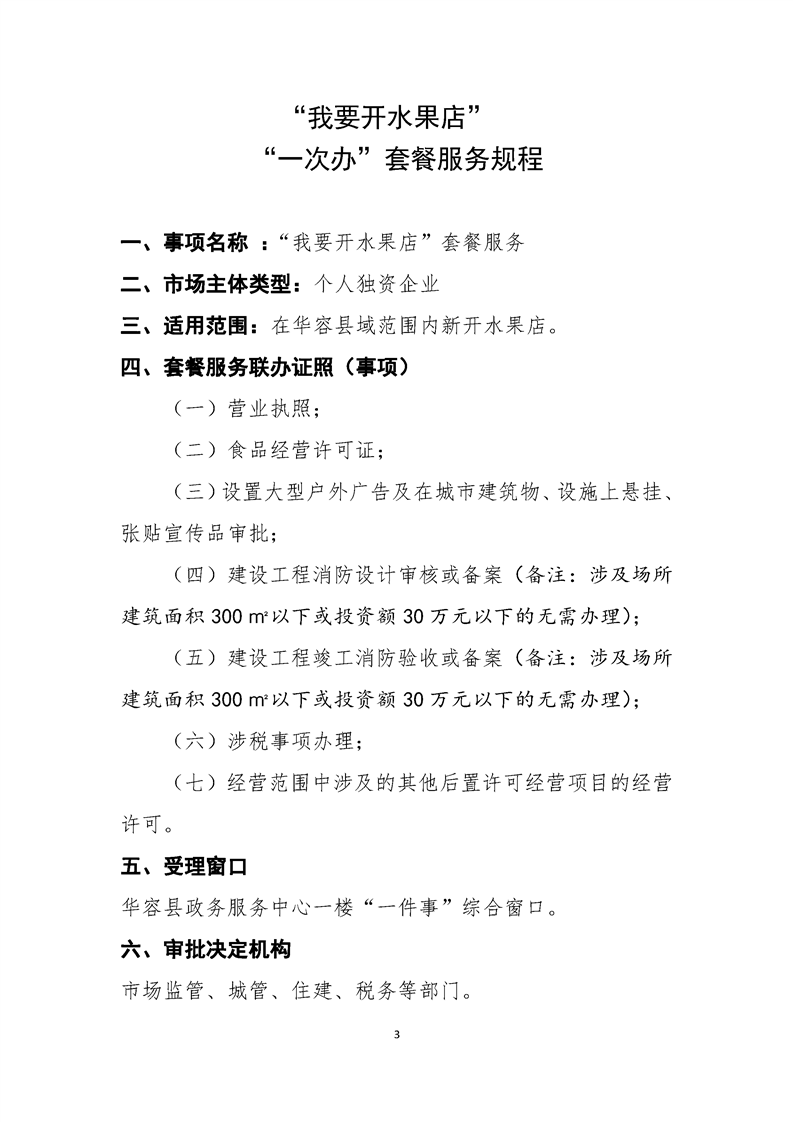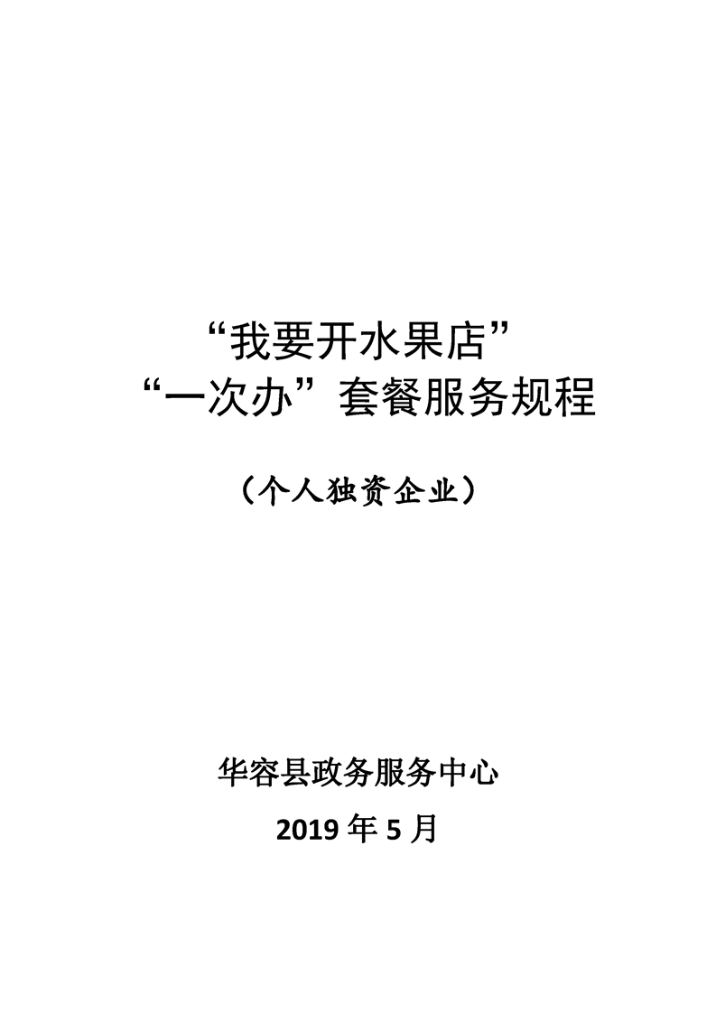 “我要开水果店” “一次办”套餐服务规程 (个人独资企业)