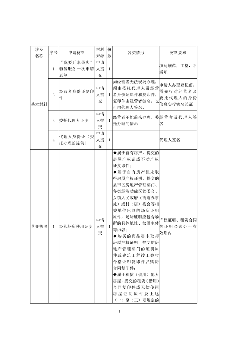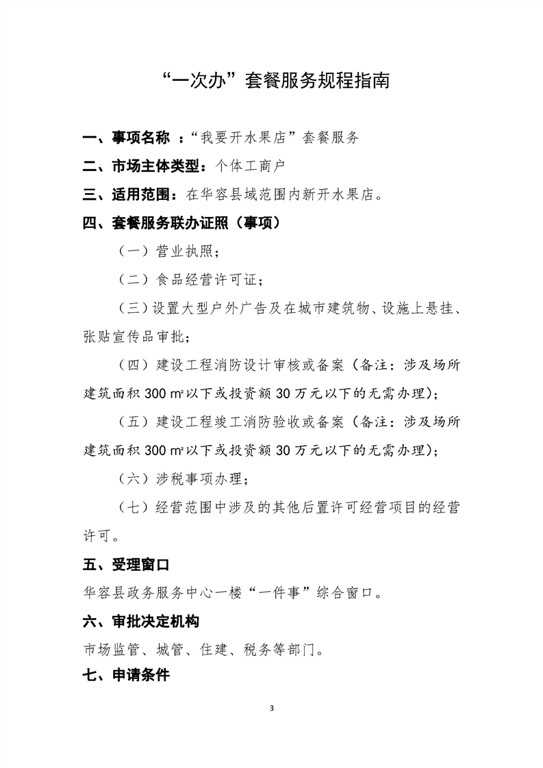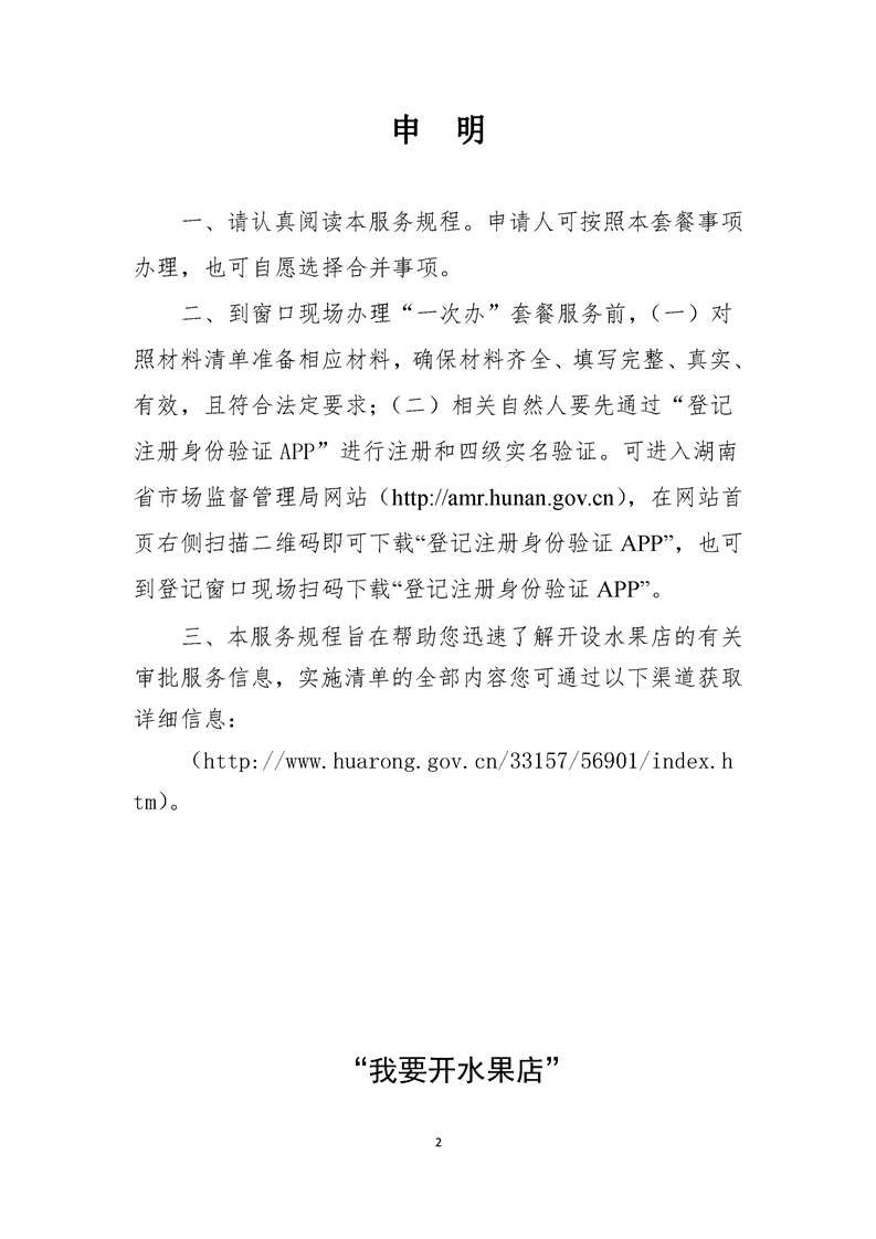 “我要开水果店” “一次办”套餐服务规程 (个体工商户)