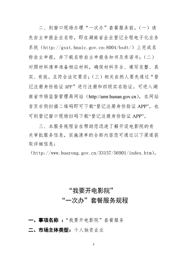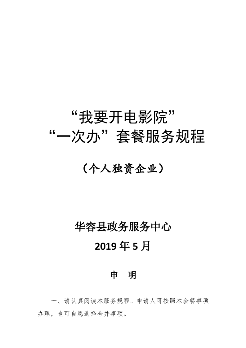 “我要开电影院”“一件事”套餐服务规程(个人独资企业)