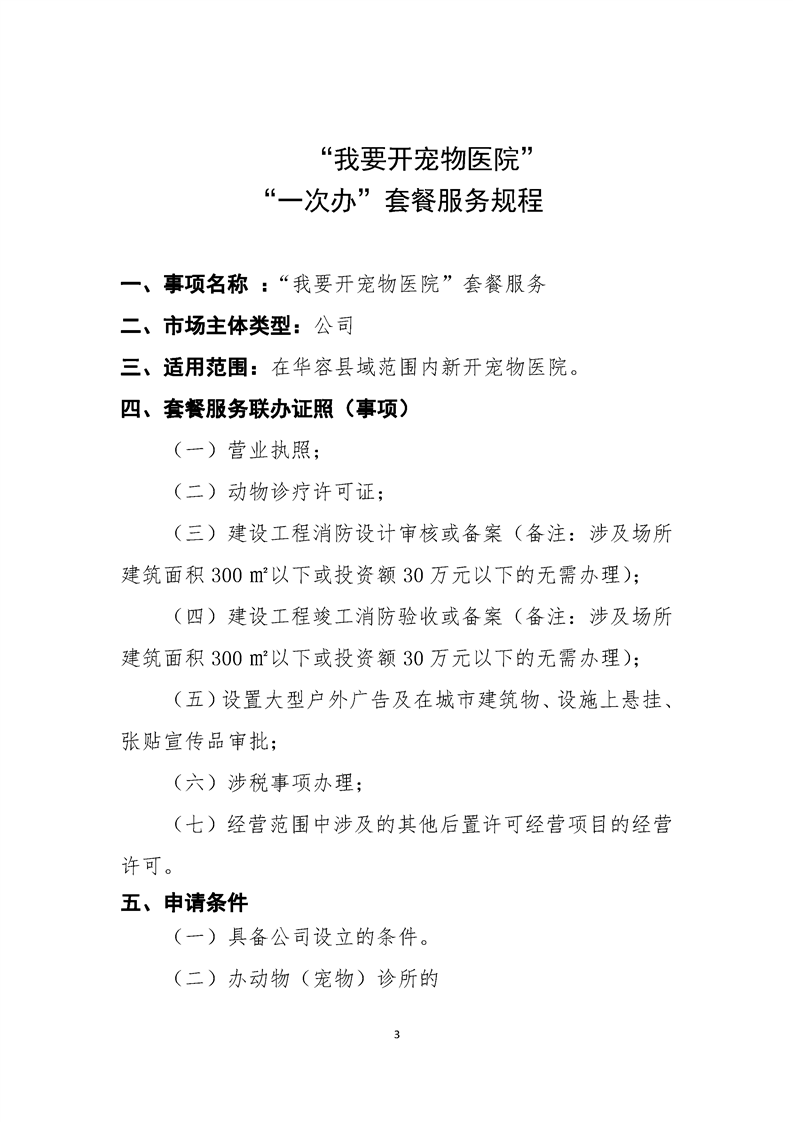 “我要开宠物医院”“一件事”套餐服务规程(公司)