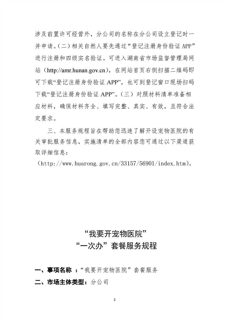 “我要开宠物医院”“一件事”套餐服务规程(分公司)