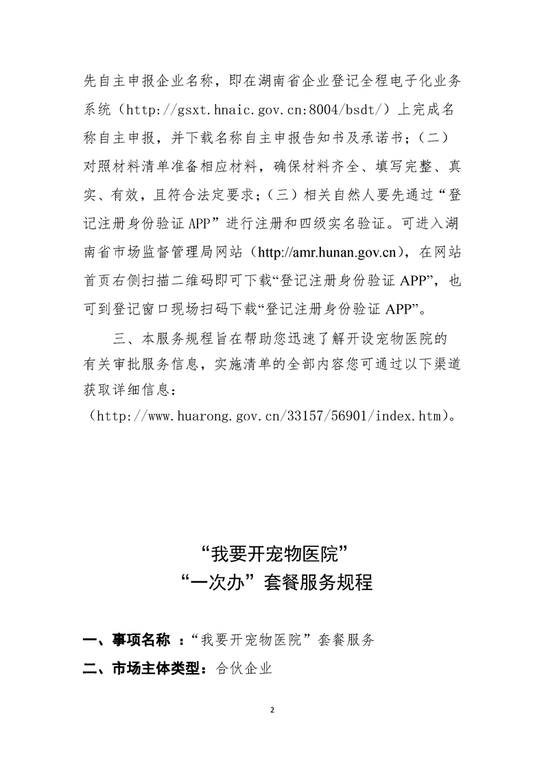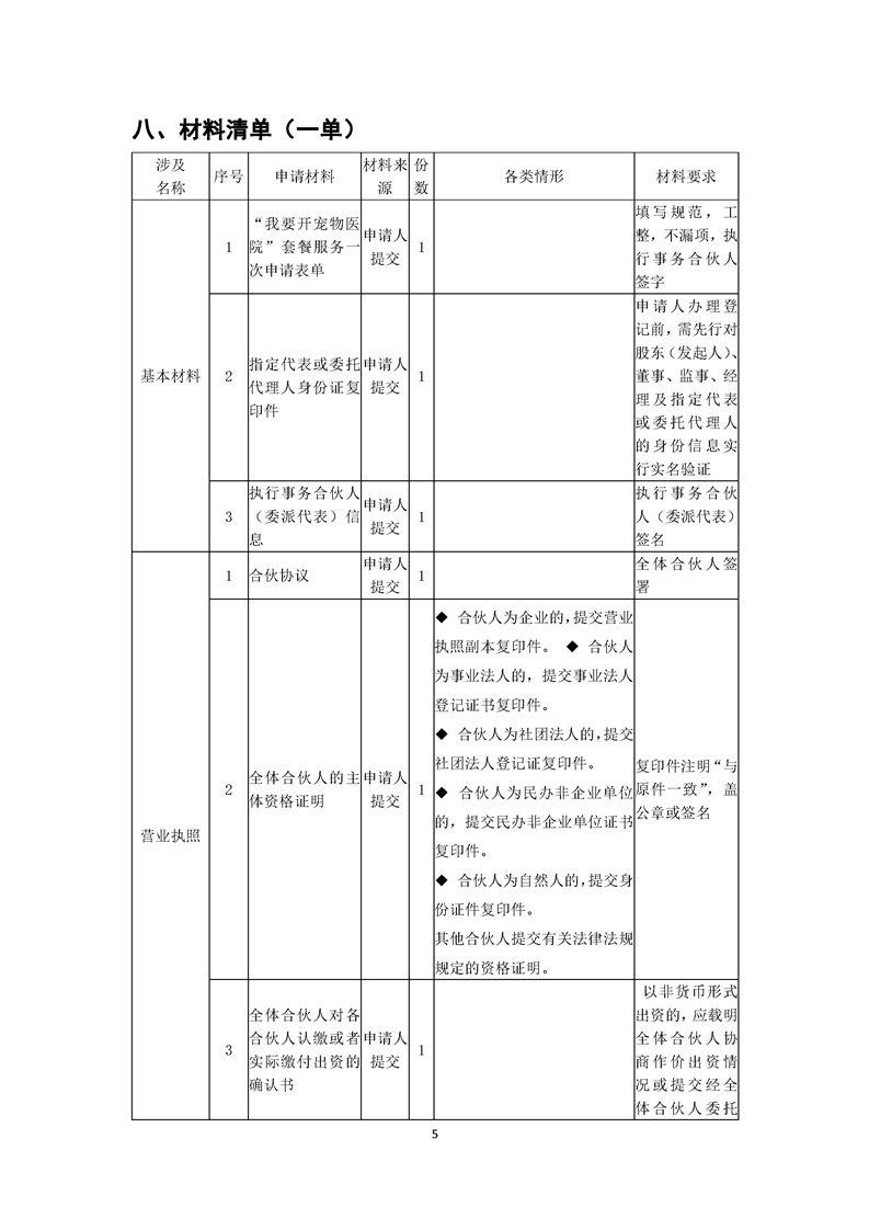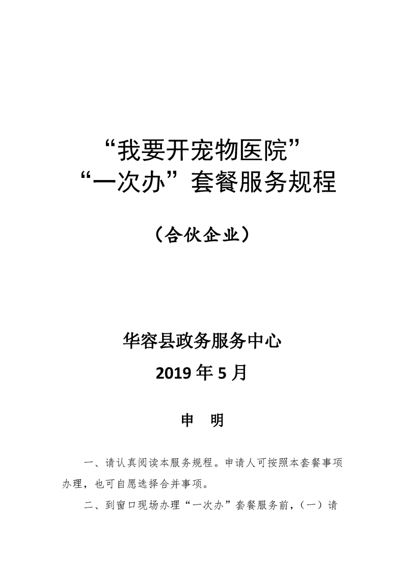 “我要开宠物医院”“一件事”套餐服务规程(合伙企业)