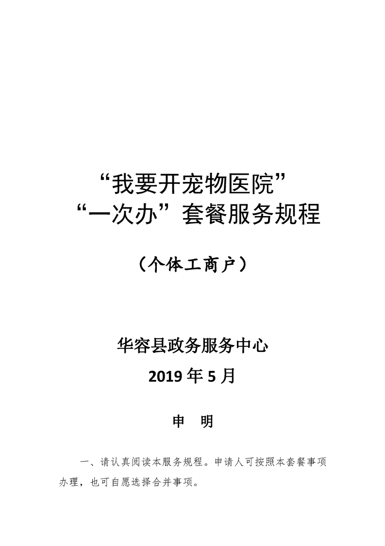 “我要开宠物医院”“一件事”套餐服务指南(个体户)