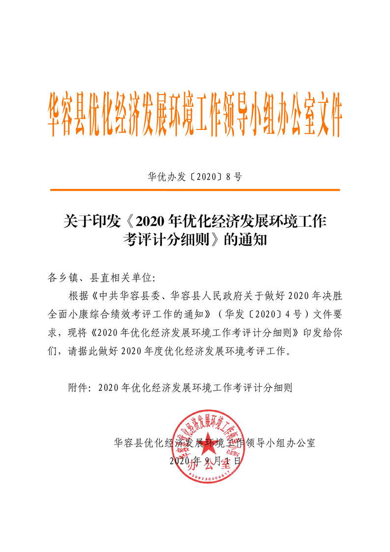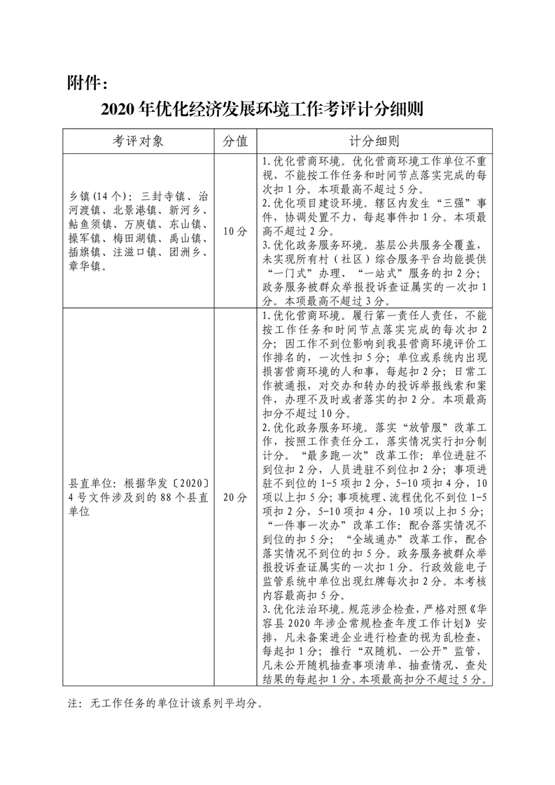 关于印发《2020年优化经济发展环境工作考评计分细则》的通知