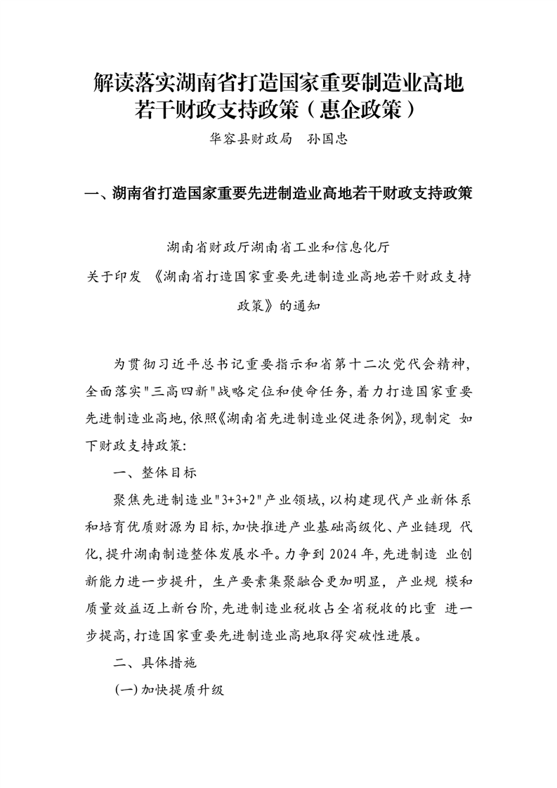 解读落实湖南省打造国家重要制造业高地 若干财政支持政策(惠企政策)
