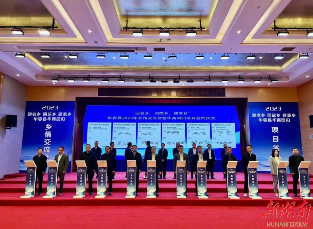 今年3月,华容县举办“迎老乡、回故乡、建家乡”2023年乡情交流会暨项目签约活动,126名寓外乡友参加,会上发布乡友智库建设文件,向首批35名智库成员颁发证书,27个华容籍乡友回乡投资项目现场签约,合同引资31.05亿元,获乡友企业捐赠教育基金1300余万元。