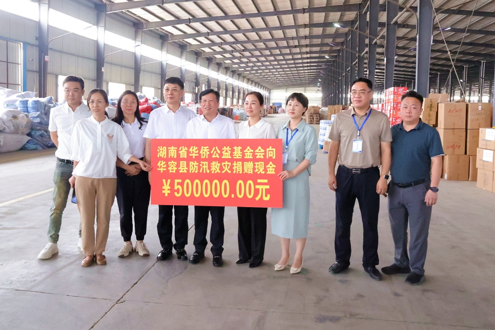 本次捐赠活动上,湖南省华侨公益基金会秘书长唐建梅还代表湖南省华侨公益基金会向屈原管理区捐赠了10万元爱心款作为抗洪抢险资金,屈原管理区民政局和区侨联相关负责人代表屈原管理区党委、区管委来华容接受捐赠。