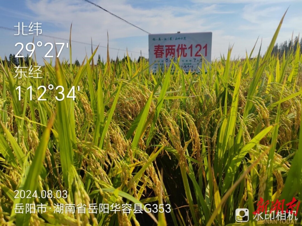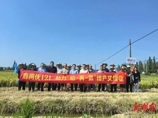湖南日报·新湖南客户端8月9日讯(通讯员 李再强 记者 徐典波) 8月8日,岳阳市农业农村局在华容县操军镇种粮大户裴文杰家稻田成功举行一次“华容稻-再-菜”现观摩活动。现场专家和农户共同见证,裴文杰今年种植70余亩春两优121,头季已实收湿谷51890公斤,折合亩产741.4公斤,起到“稻+再+菜”机艺融合高产高效攻关示范作用。