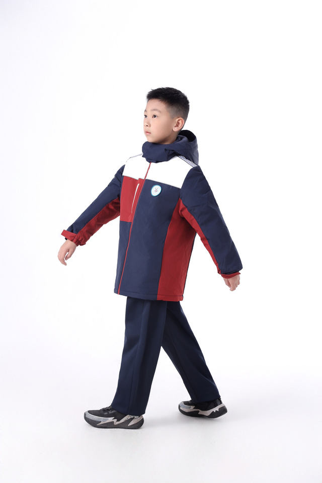 “新的冬季校服穿上太酷了,红黑配色很高级,校徽还是魔术贴的形式,体育课上运动也一点都不紧绷。”实验小学的小宇对着镜子转动身体,随处可见的洞庭湖水波纹和岳阳楼盔顶造型设计让他爱不释手。这份喜爱,源于校服设计中对文化与功能的双重打磨。