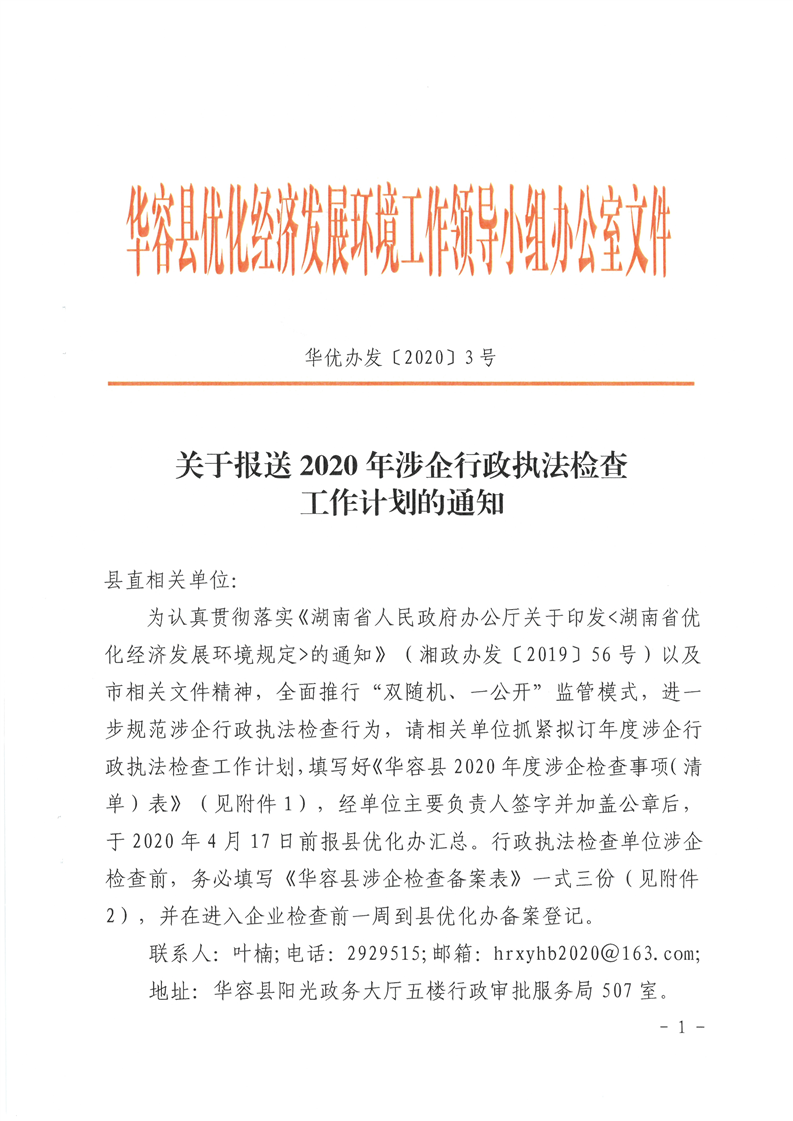 关于报送2020年涉企行政执法检查工作计划的通知