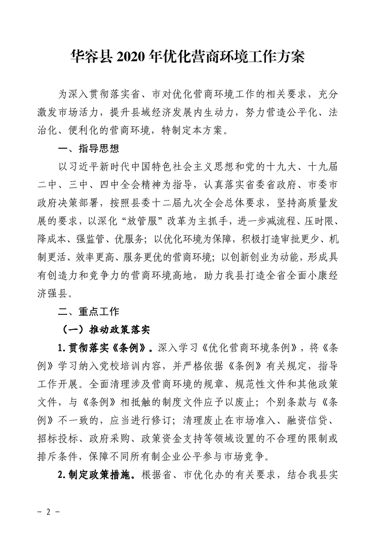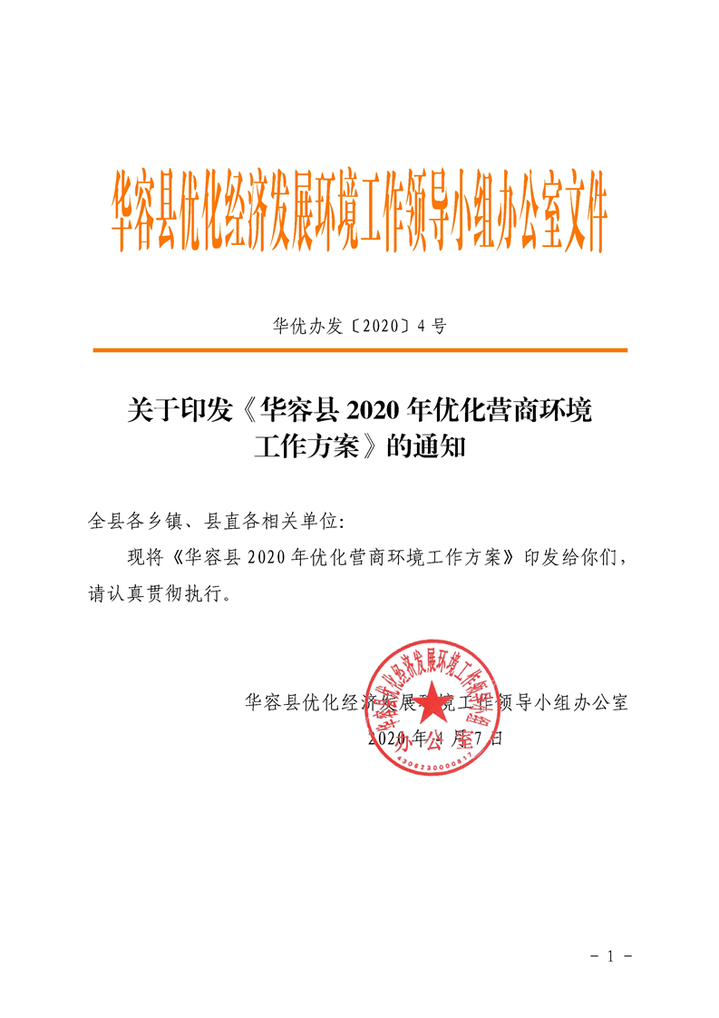 关于印发《华容县2020年优化营商环境工作方案的通知》