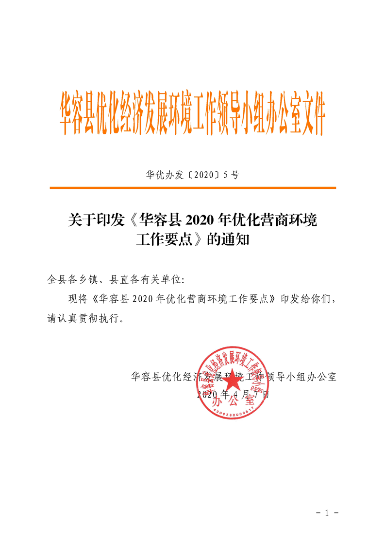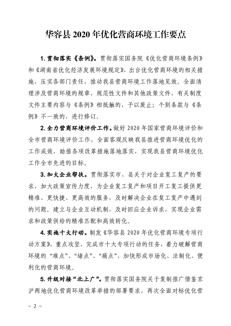 关于印发《华容县2020年优化营商环境工作要点》的通知