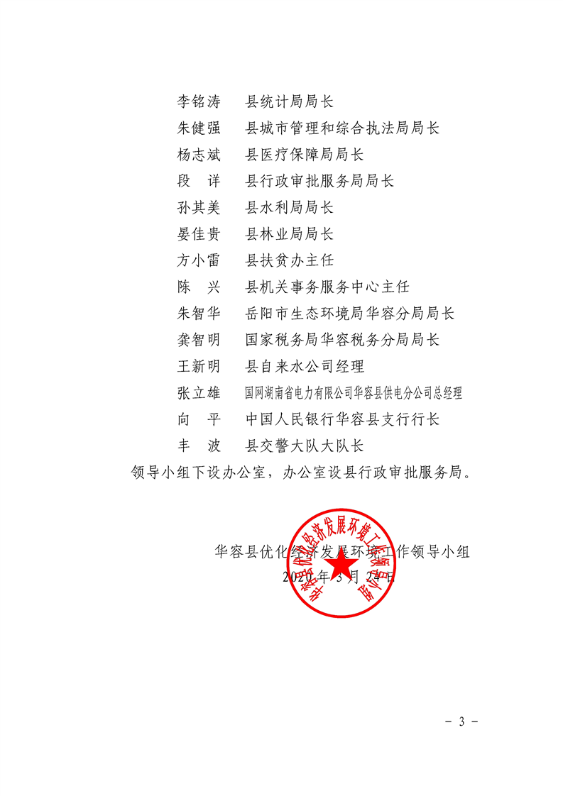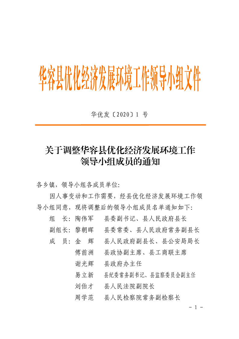 关于调整华容县优化经济发展环境工作领导小组成员的通知