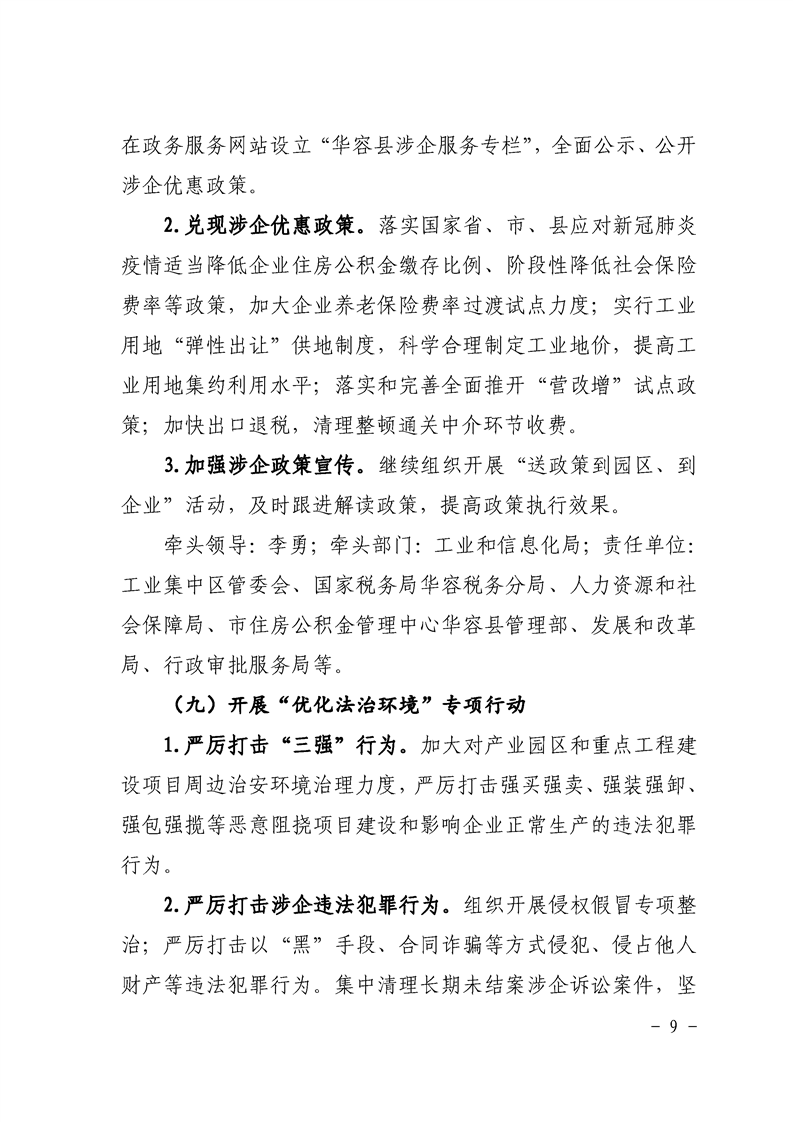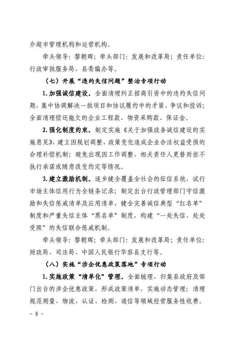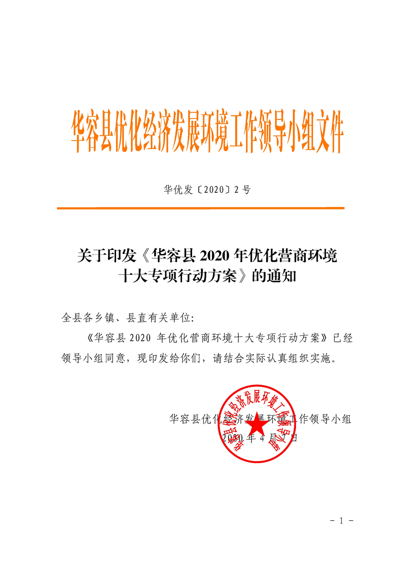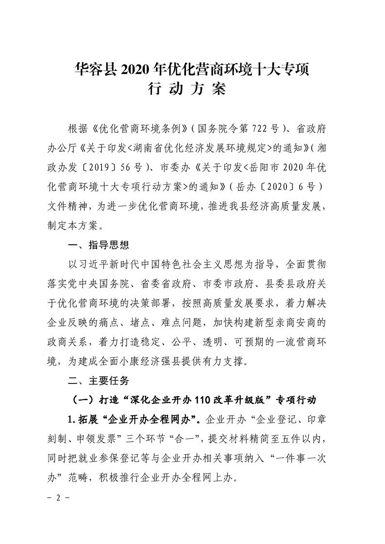 关于印发《华容县2020年优化营商环境十大专项行动方案》的通知