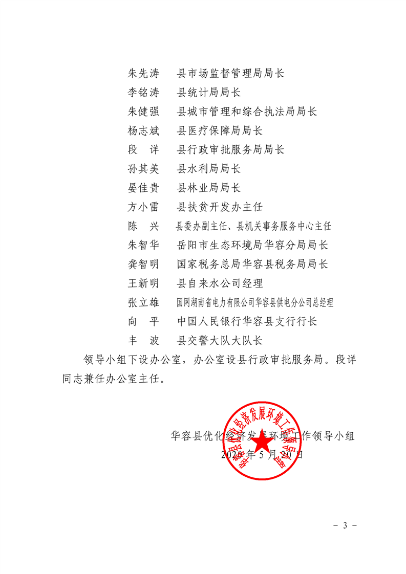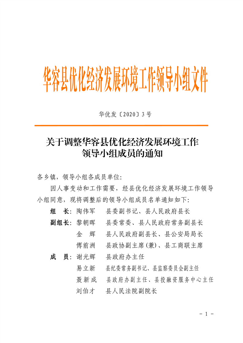 关于调整华容县优化经济发展环境工作领导小组成员的通知 华优发【2020】3号