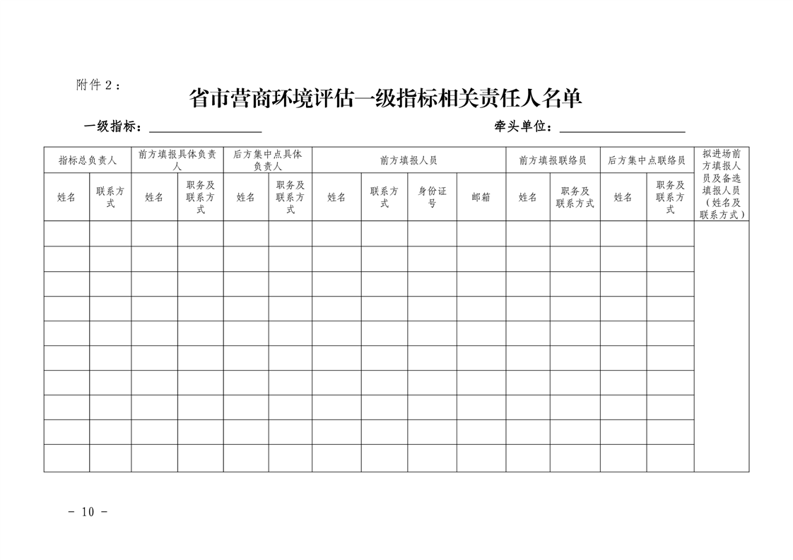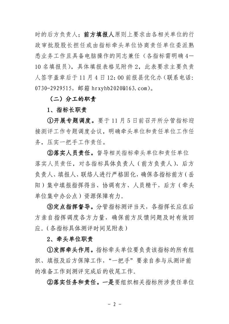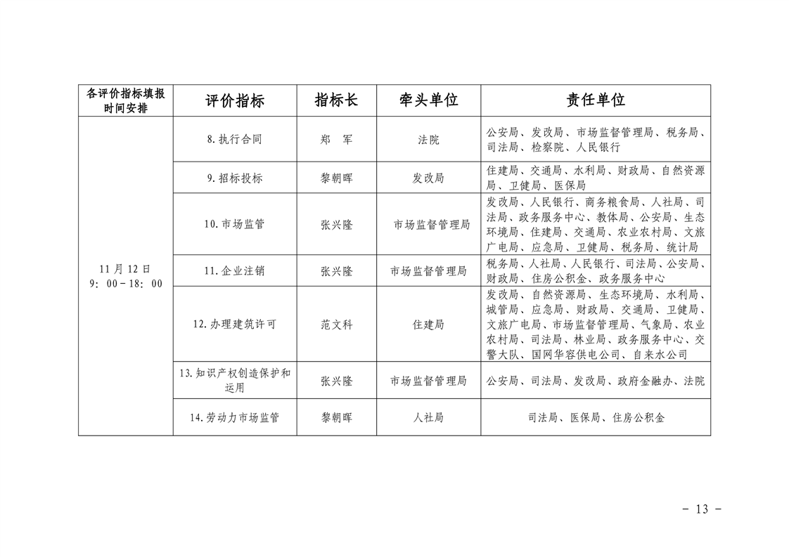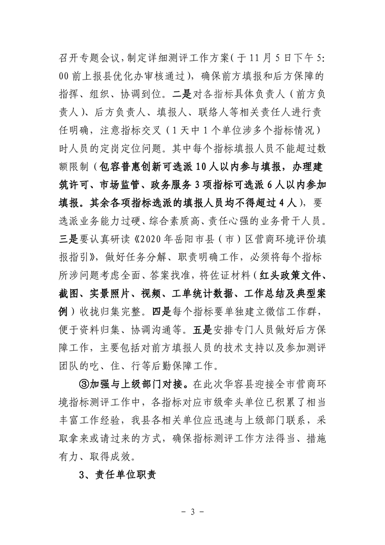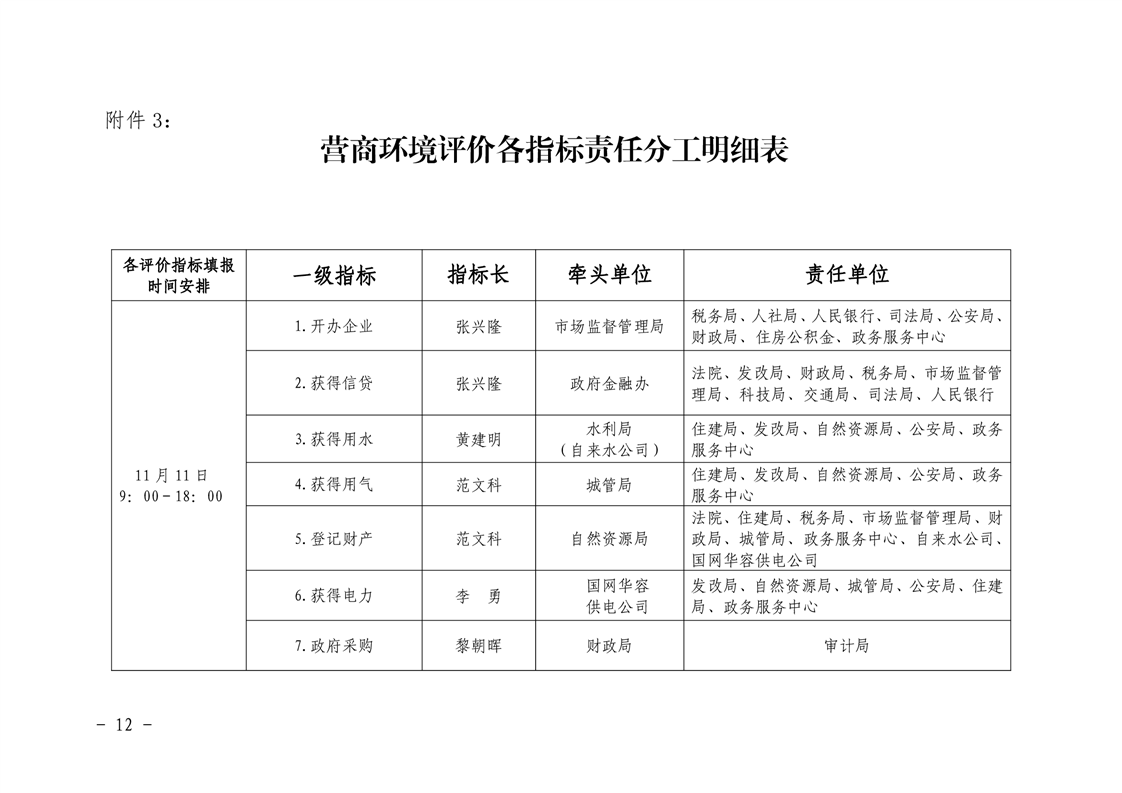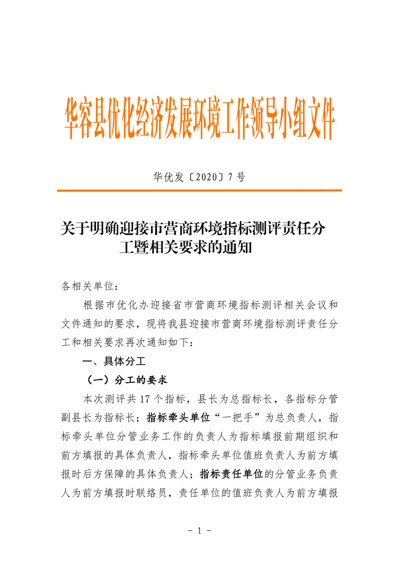 关于明确迎接市营商环境指标测评责任分工暨相关要求的通知