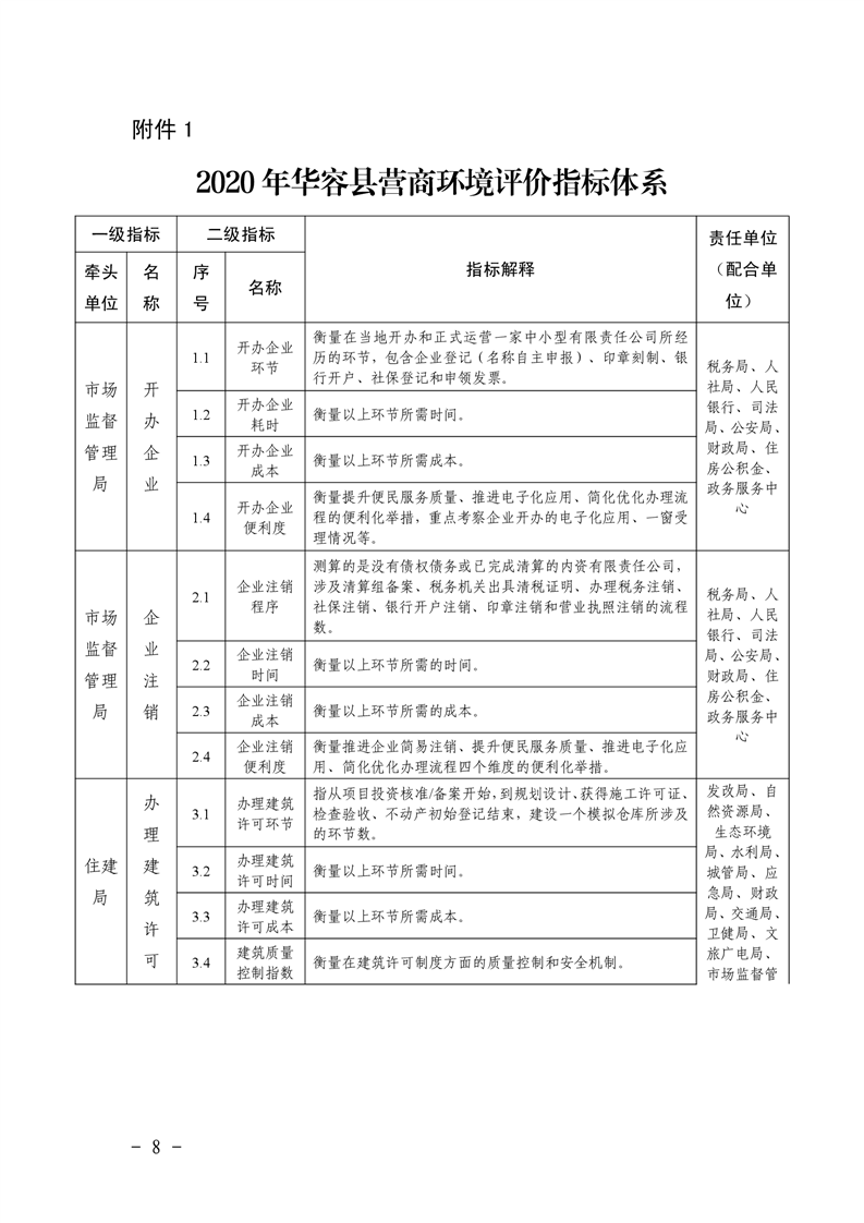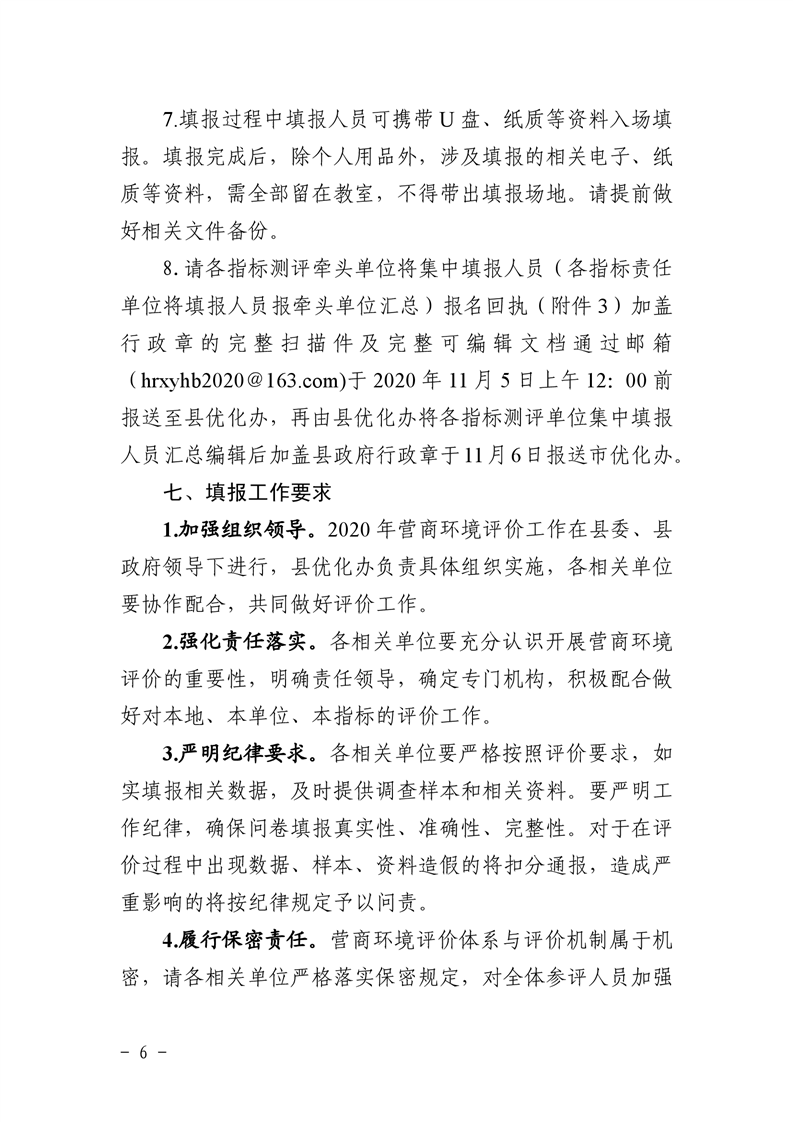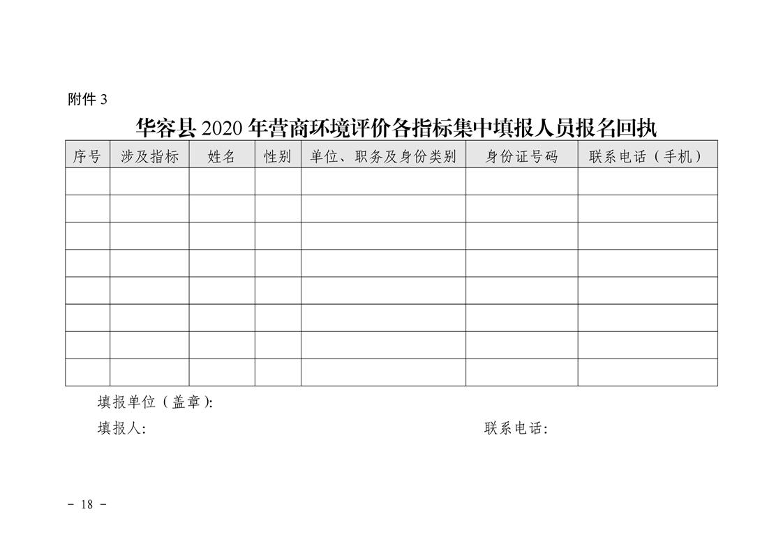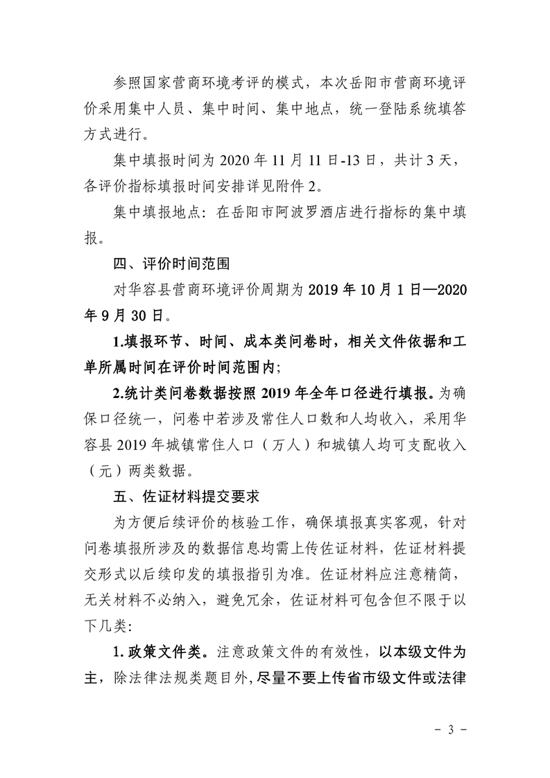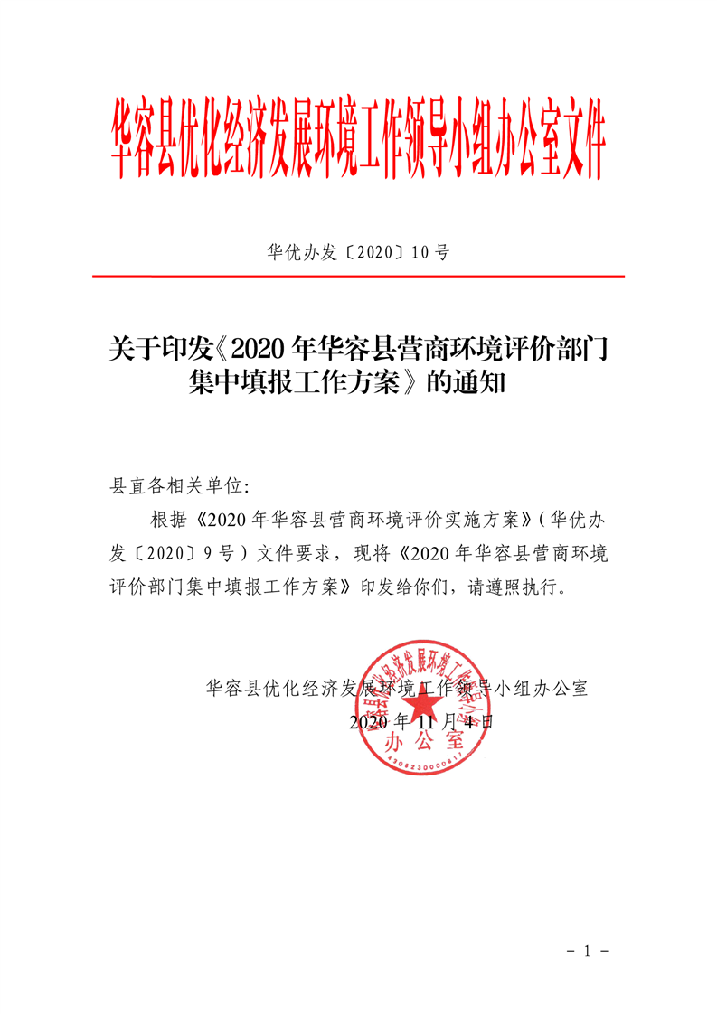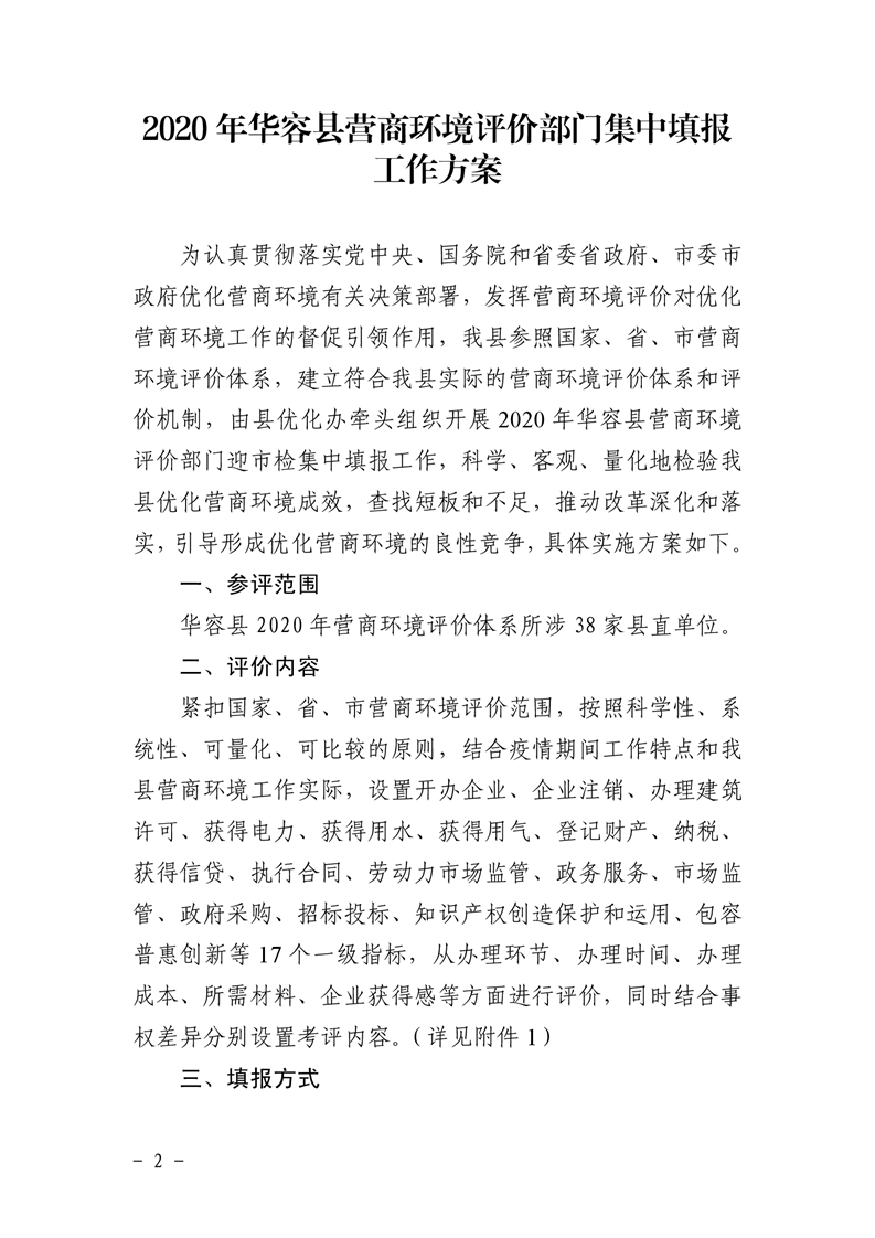 关于印发《2020年华容县营商环境评价部门集中填报工作方案》的通知