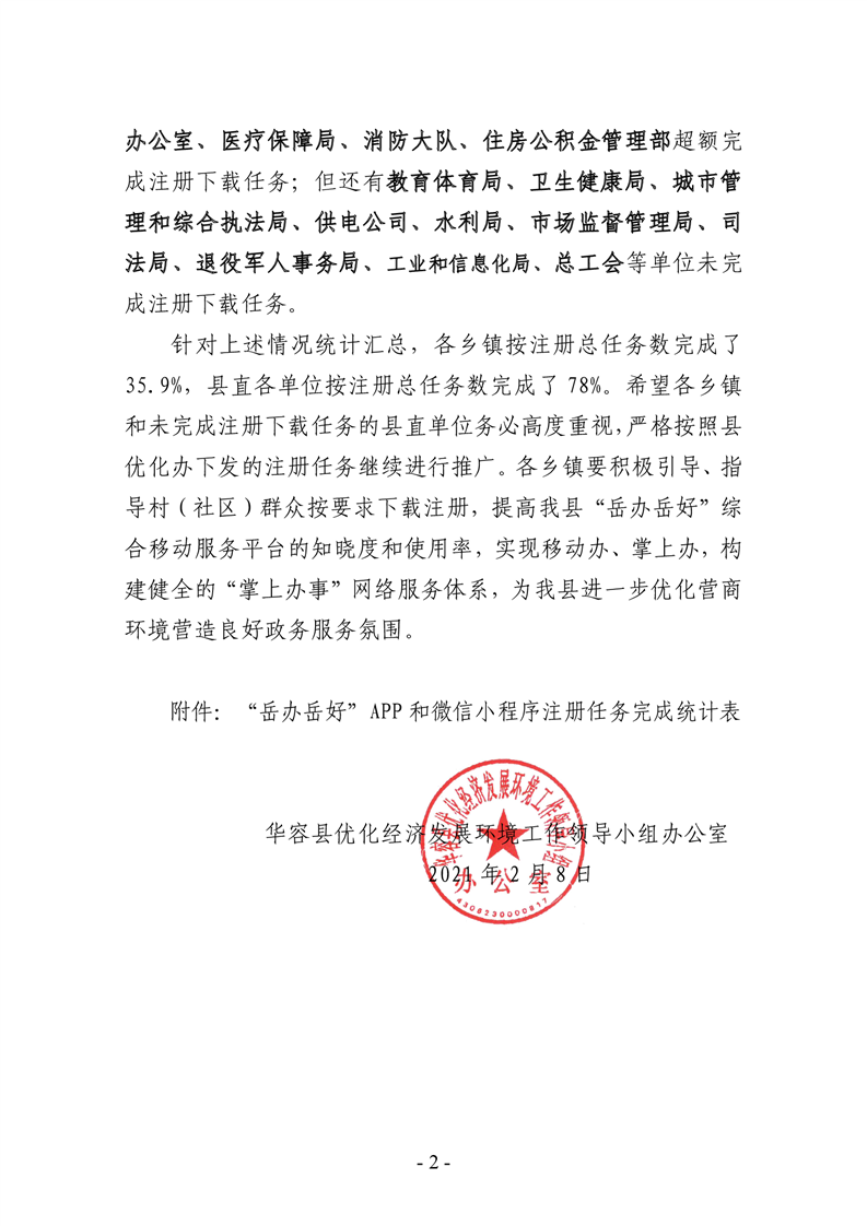 关于全县“岳办岳好”综合移动服务平台 推广工作开展情况的通报