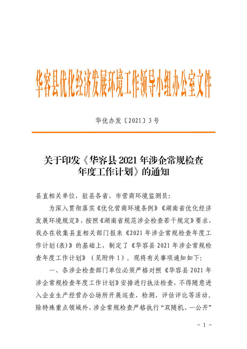 华优办发〔2021〕3号 关于印发《华容县2021年涉企常规检查年度工作计划》的通知.pdf