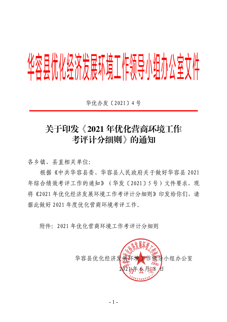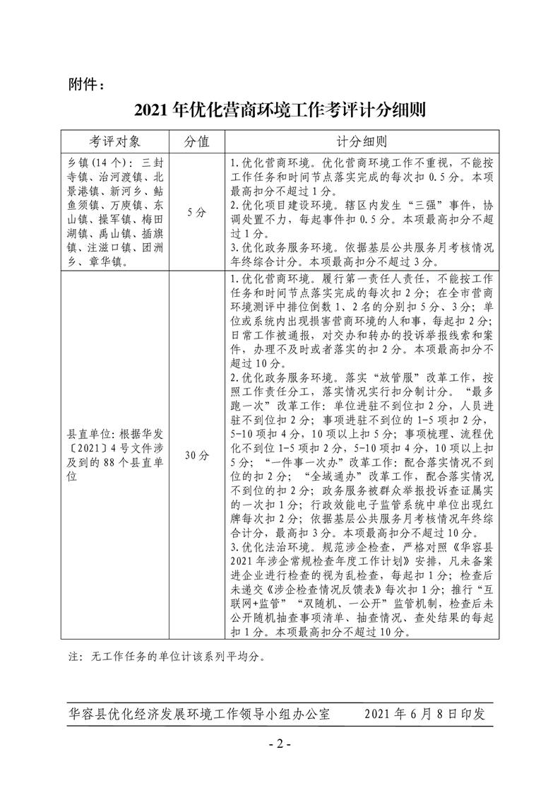 关于印发《2021 年优化营商环境工作 考评计分细则》的通知