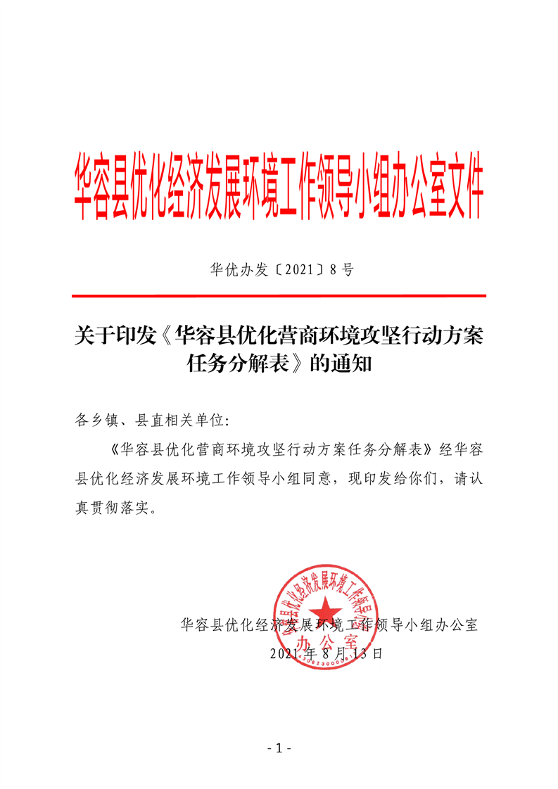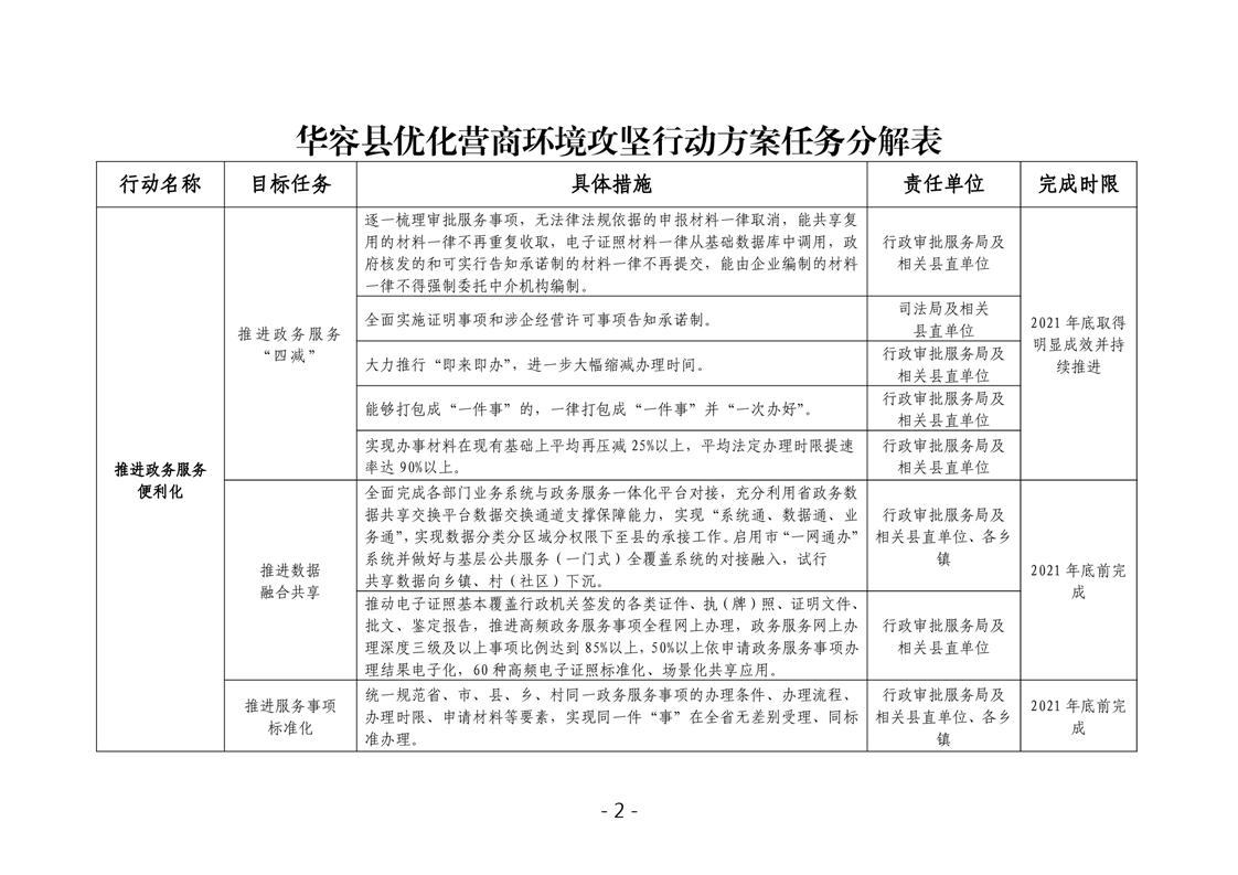 关于印发《华容县优化营商环境攻坚行动方案 任务分解表》的通知