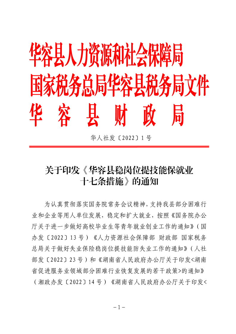 关于印发《华容县稳岗位提技能保就业 十七条措施》的通知