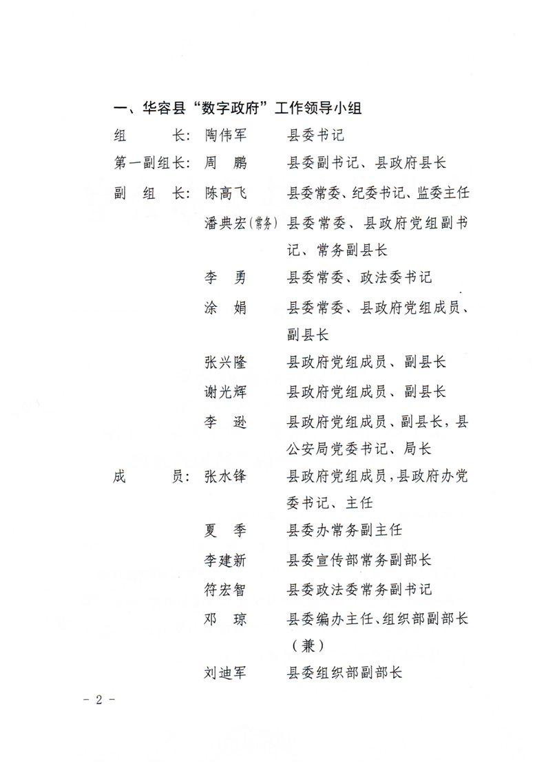 华办〔2022〕15号关于调整成立华容县“数字政府”工作领导小组等议事协调机构的通知