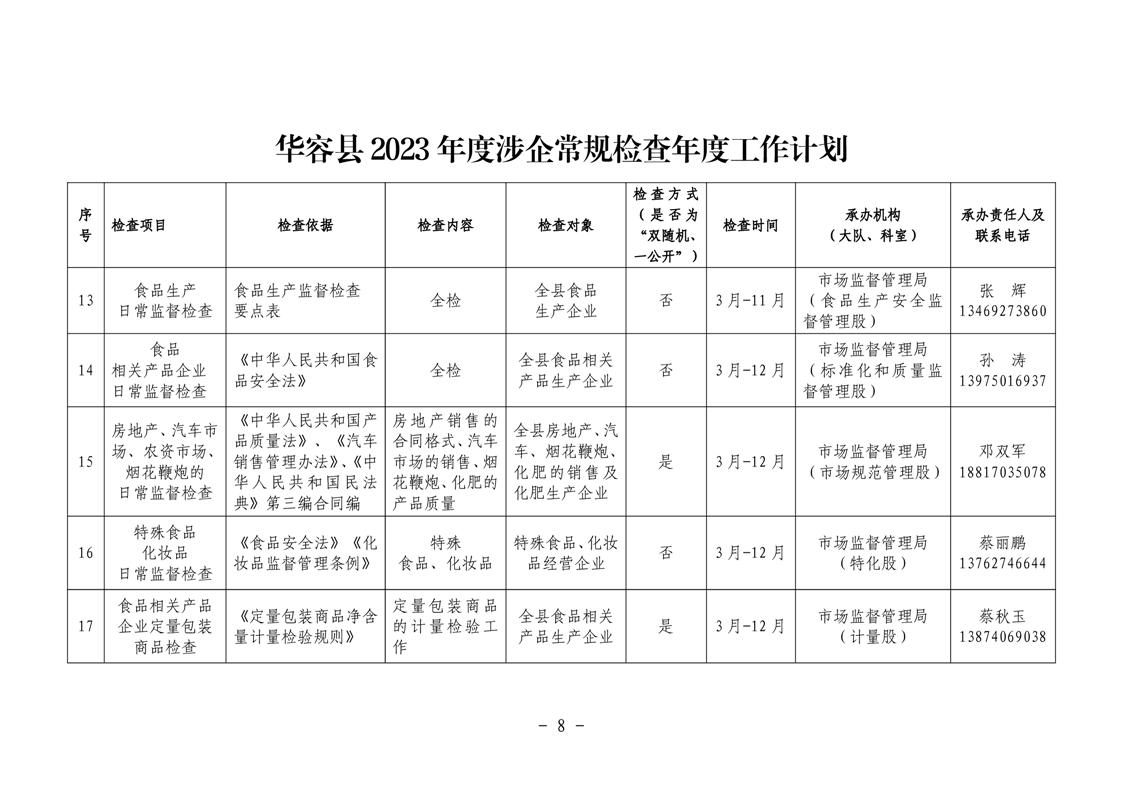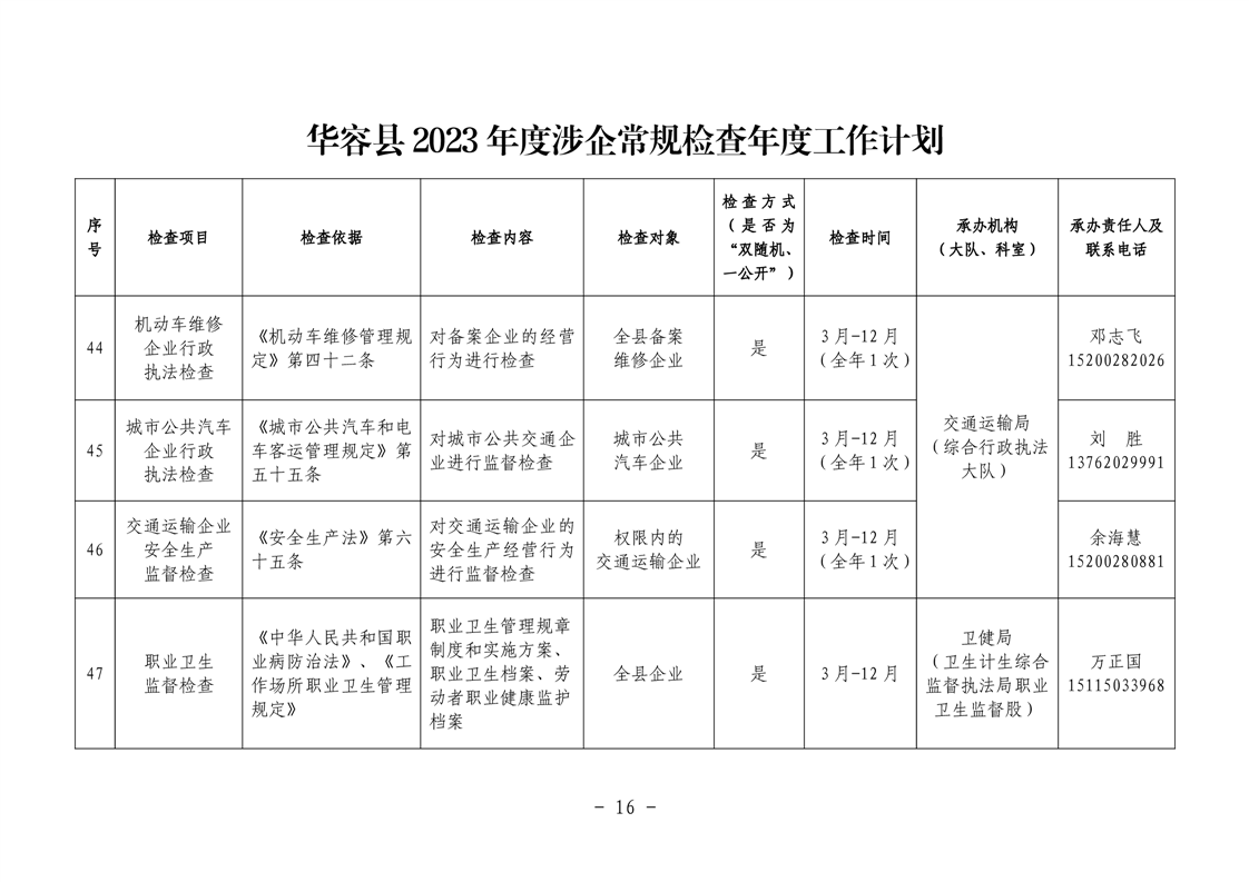关于印发《华容县2023年度涉企常规检查工作计划》的通知