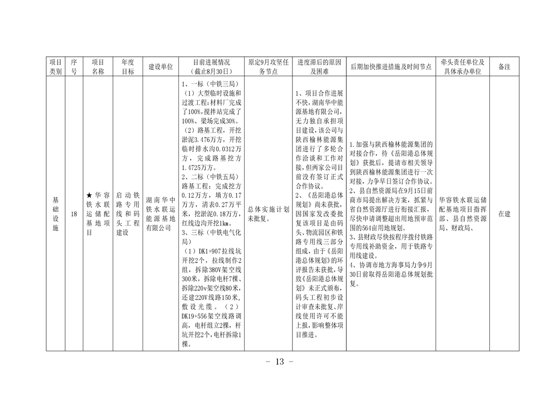 华容县重大项目建设集中攻坚行动工作情况通报(第一期)
