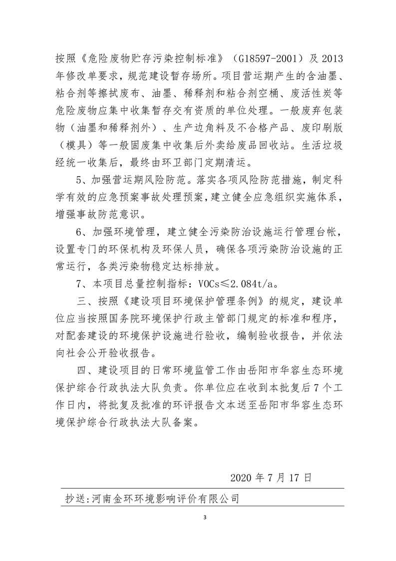 关于年产300吨塑料包装制品异地扩建项目 环境影响报告表的批复