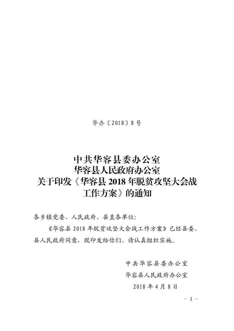 华办(2018)8 号-关于印发《华容县2018年脱贫攻坚大会战工作方案》的通知