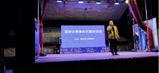 团洲乡人大主席周文华亲历送戏下乡现场,结合典型案例,为群众讲解毒品的种类、毒品的危害及相关法律法规等,进一步增强群众防毒拒毒意识。