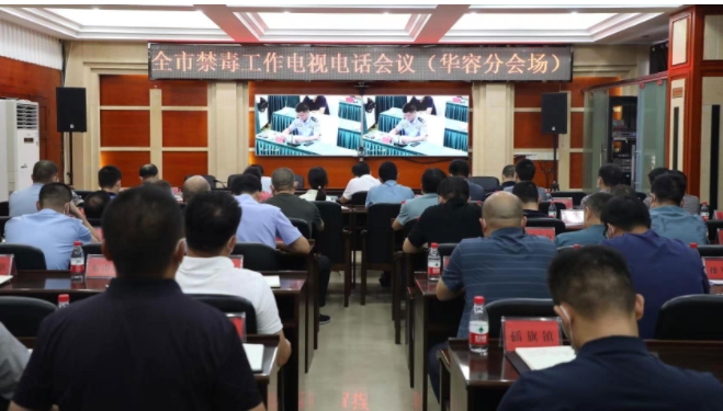 9月5日,岳阳市禁毒工作电视电话会议召开,华容县委副书记、县长周鹏,县领导李勇、李逊以及各部门、乡镇相关负责人等在华容分会场收听收看会议。