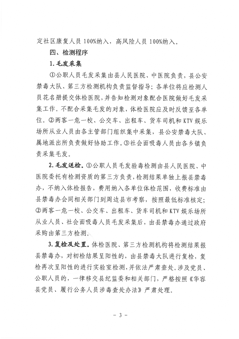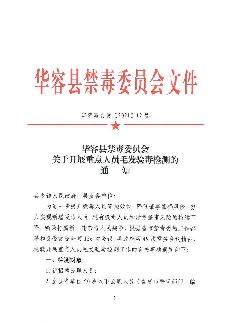 华容县禁毒委员会《关于开展重点人员毛发验毒检测的通知》