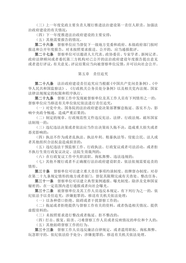 中共中央办公厅 国务院办公厅印发 《法治政府建设与责任落实督察工作规定》