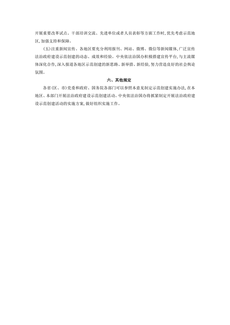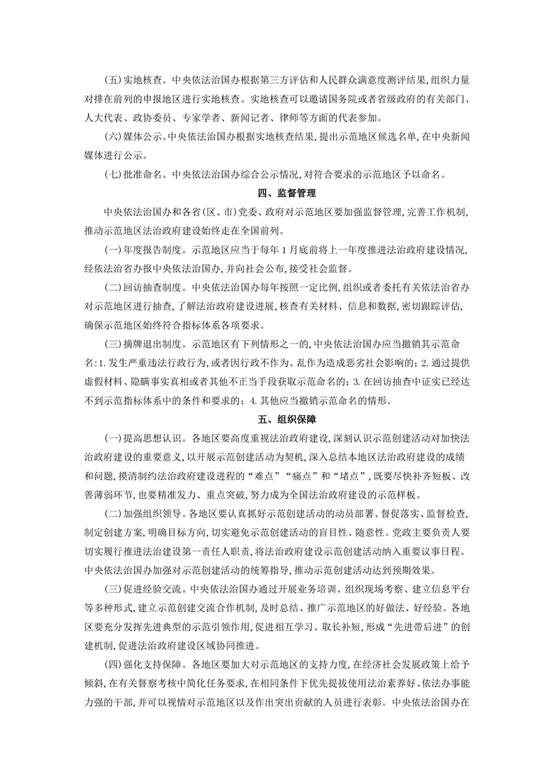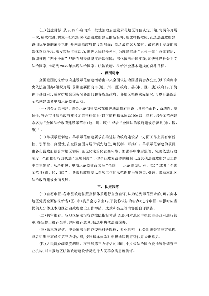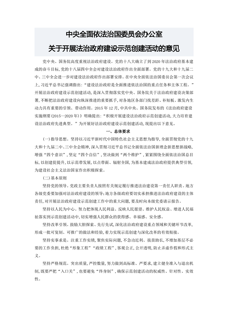 中央全面依法治国委员会办公室 关于开展法治政府建设示范创建活动的意见