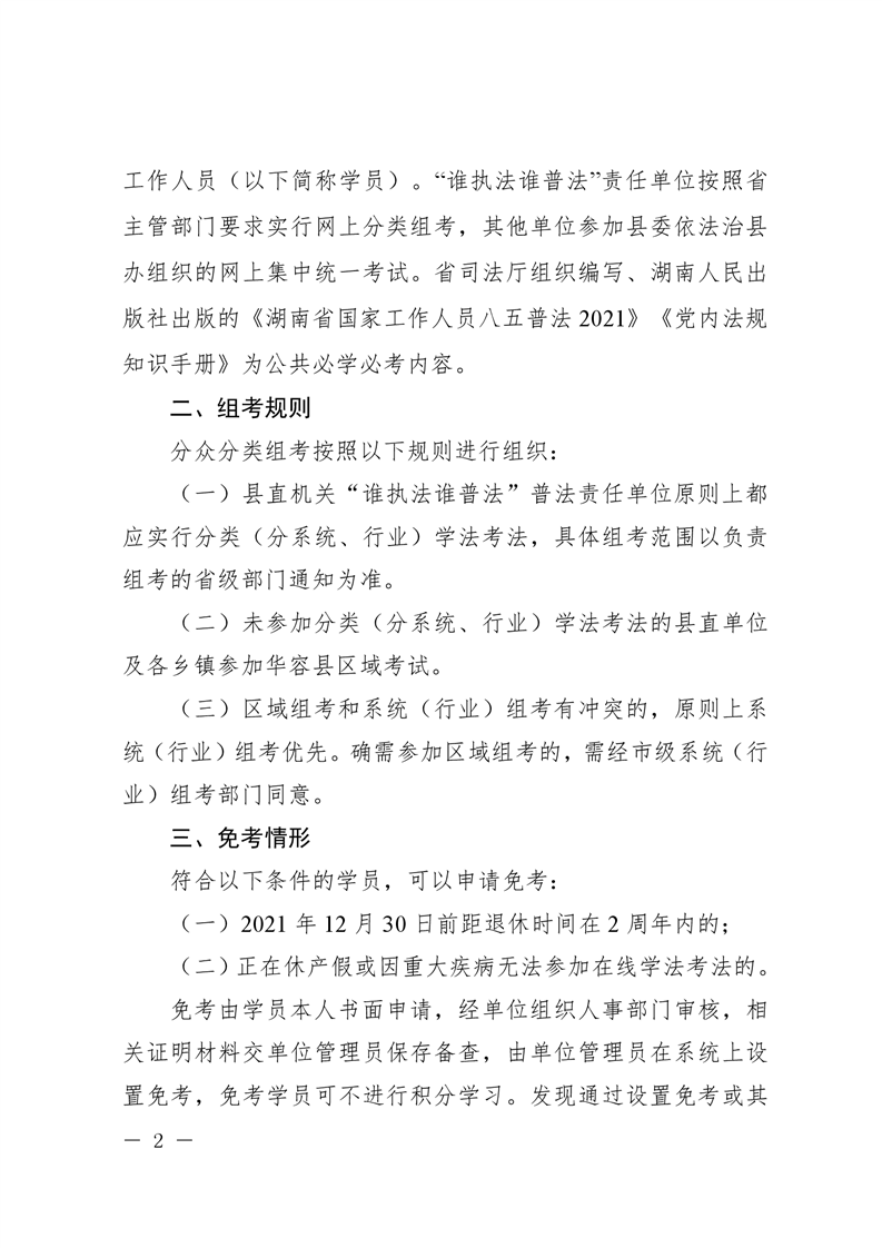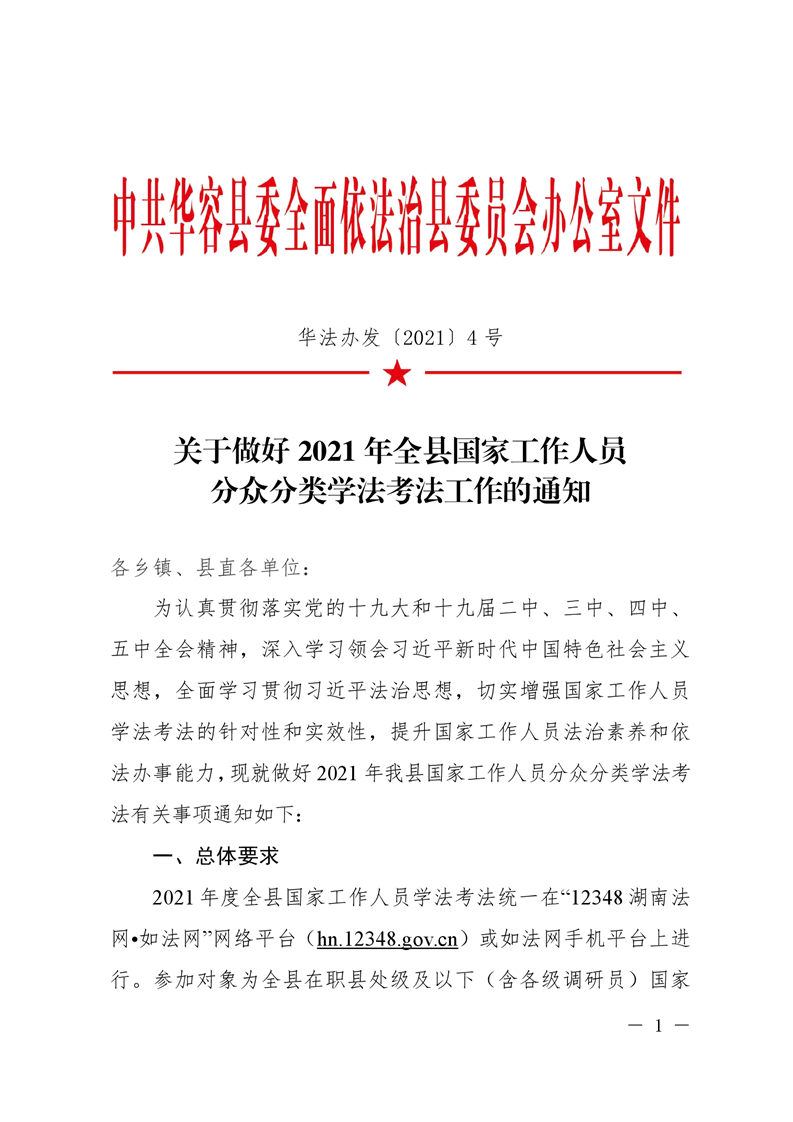 关于做好2021年全县国家工作人员分众分类学法考法工作的通知