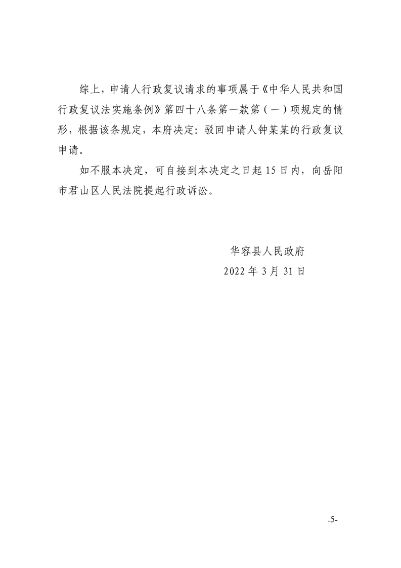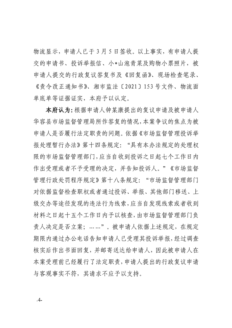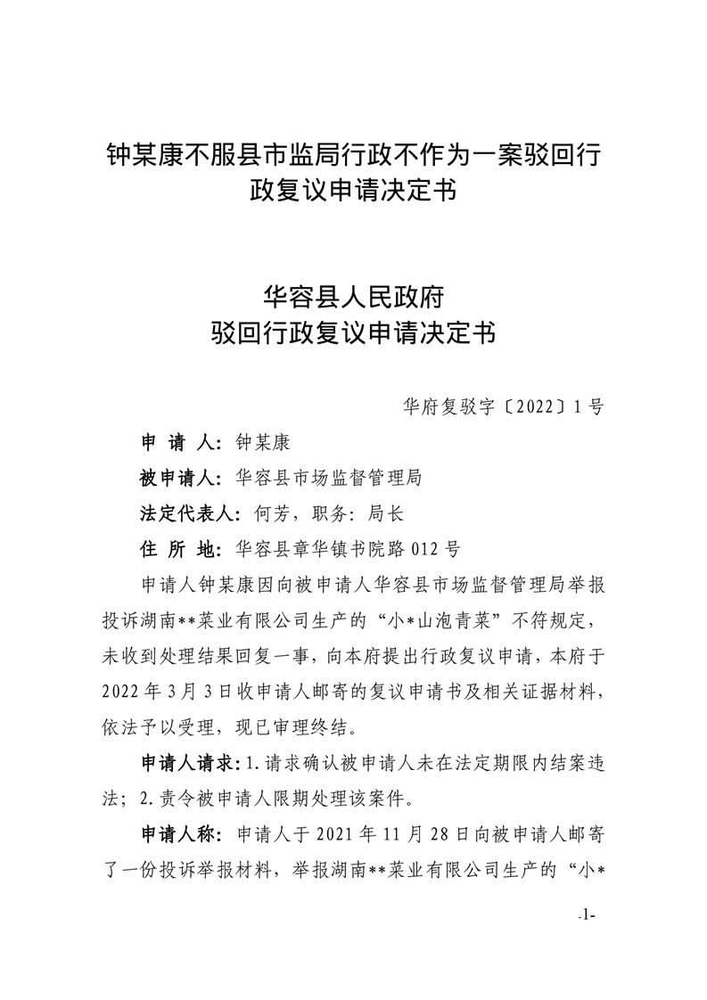 钟某康不服县市监局行政不作为一案驳回行政复议申请决定书