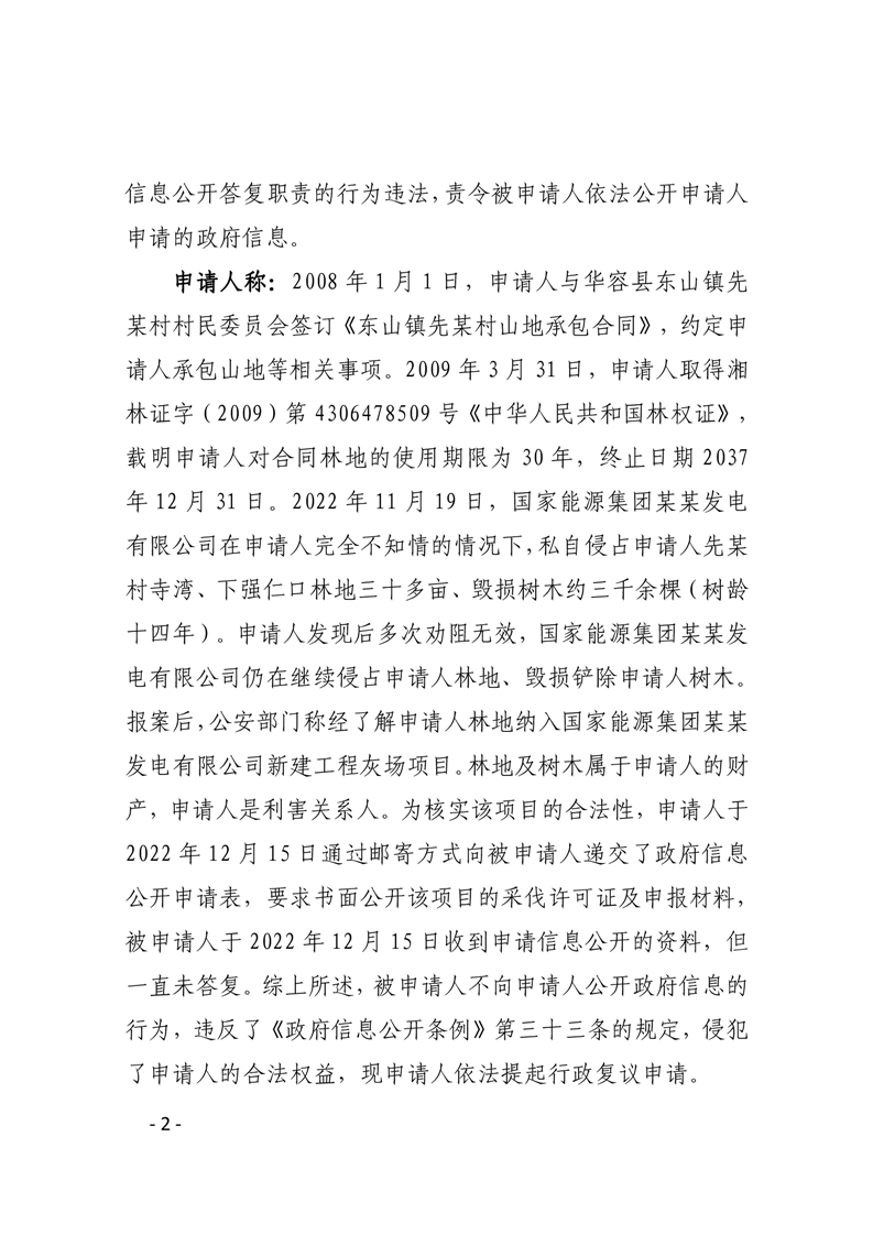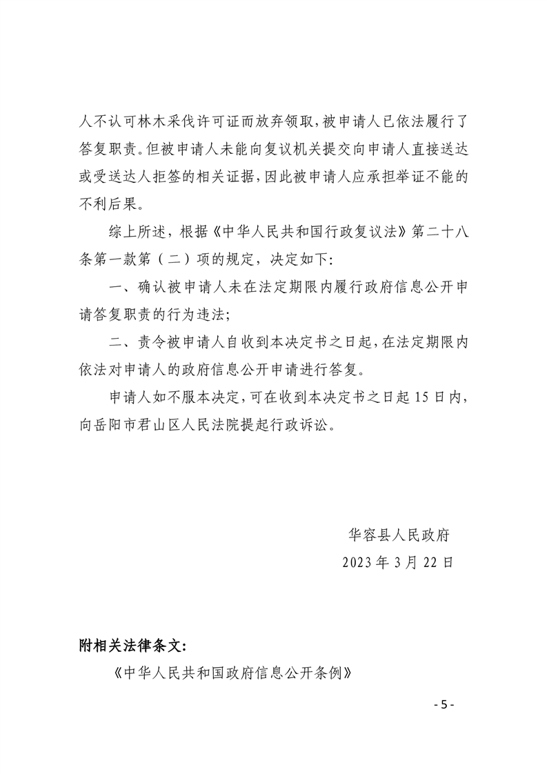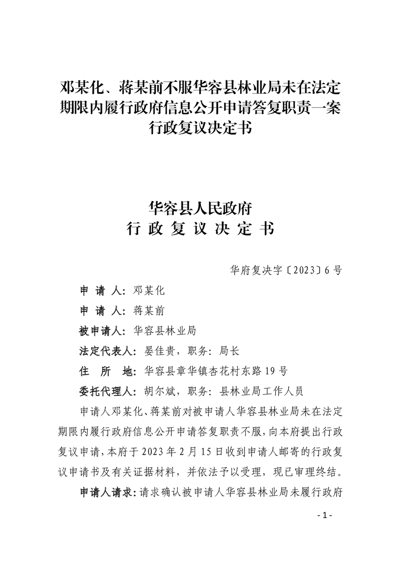 华府复决字〔2023〕6号邓某化、蒋某前不服华容县林业局未在法定期限内履行政府信息公开申请答复职责一案行政复议决定书