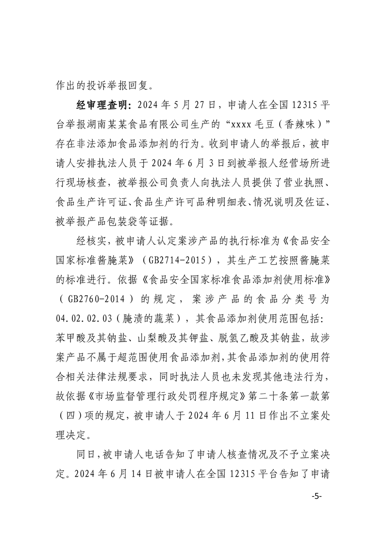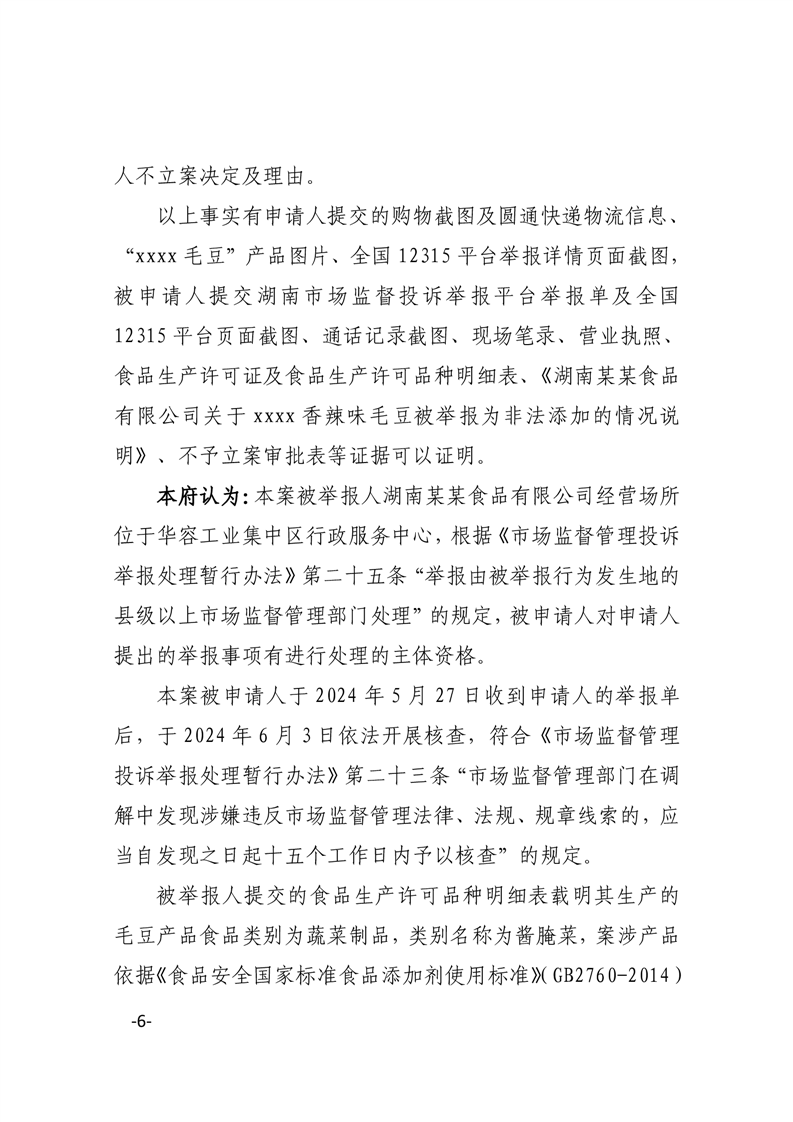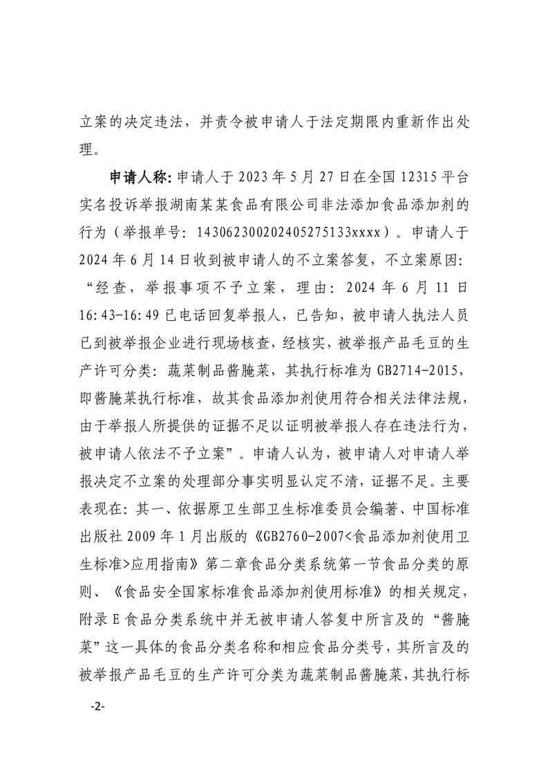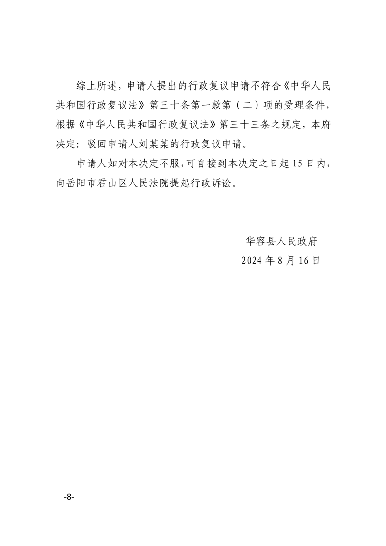 华府复决字〔2024〕23号刘某某不服华容县市场监督管理局在全国12315平台针对其举报作出的不予立案决定一案驳回行政复议申请决定书