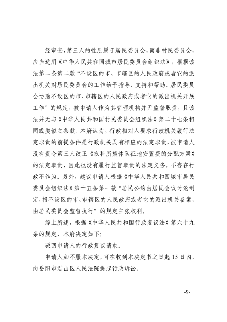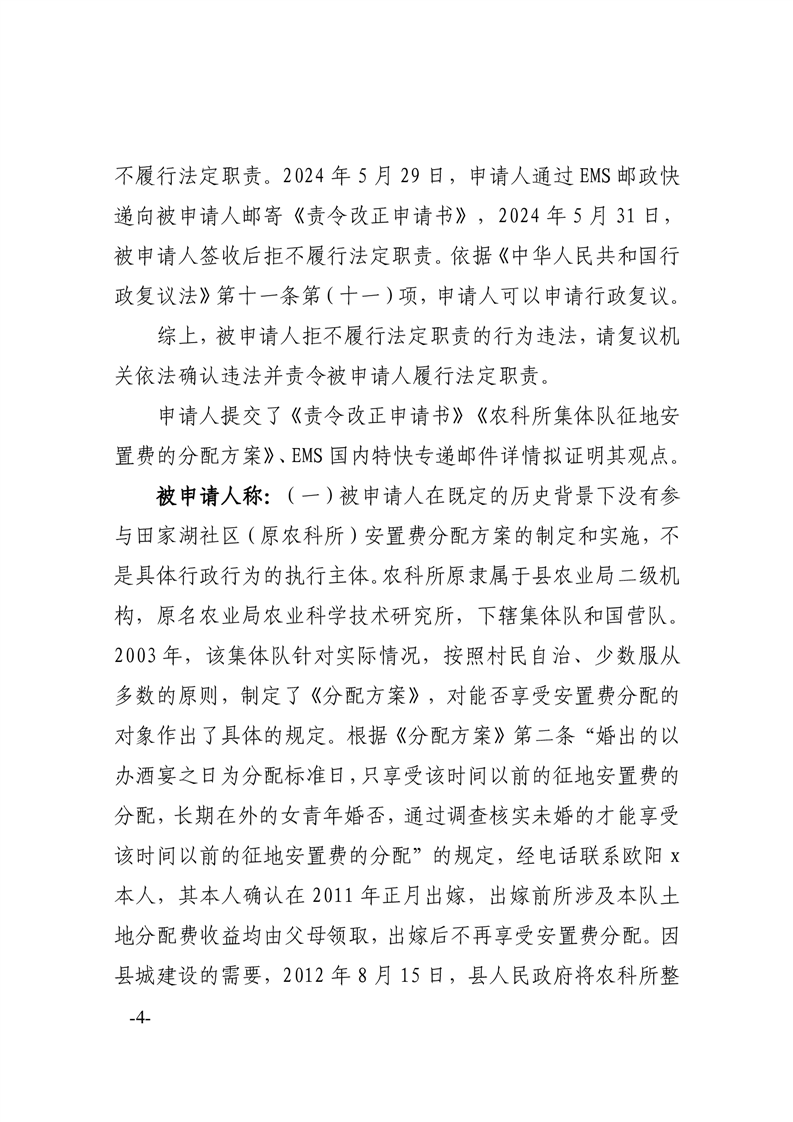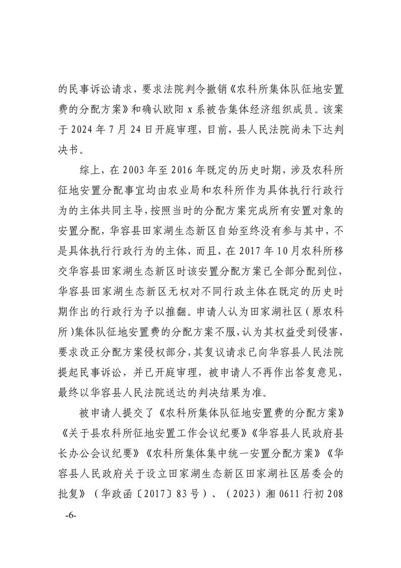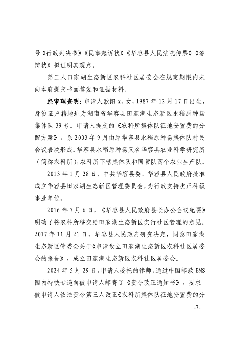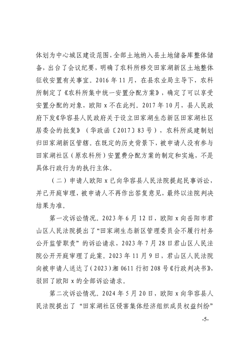 华府复决字〔2024〕25号欧阳x不服华容县田家湖生态新区不履行法定职责一案驳回行政复议请求决定书