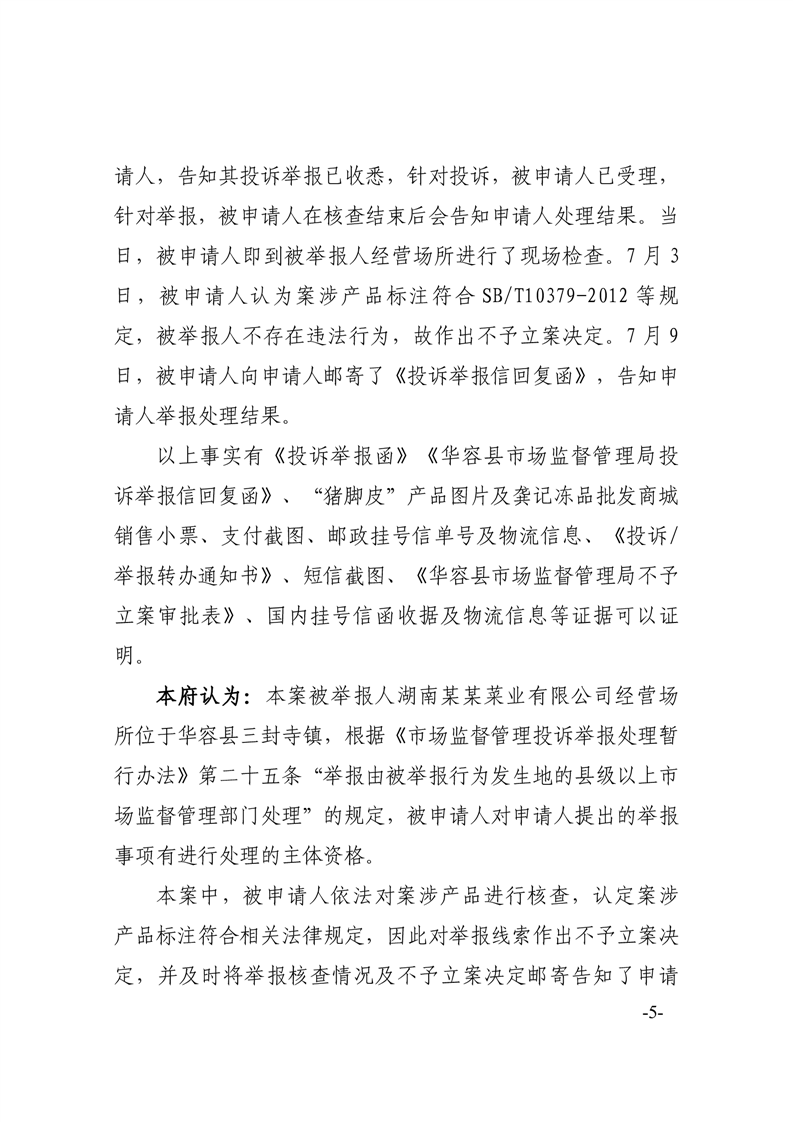 华府复决字〔2024〕30号申请人李某某不服被申请人华容县市场监督管理局对其举报作出的不予立案决定一案行政复议决定书