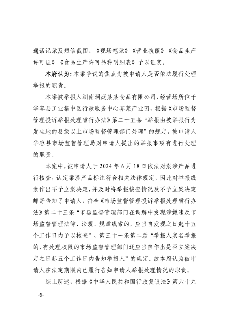 华府复决字〔2024〕31号申请人谢某某不服被申请人华容县市场监督管理局未在法定期限内告知其是否立案决定一案行政复议决定书
