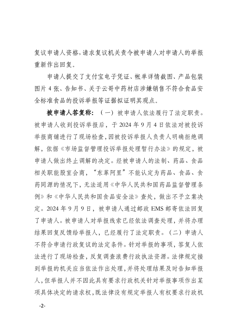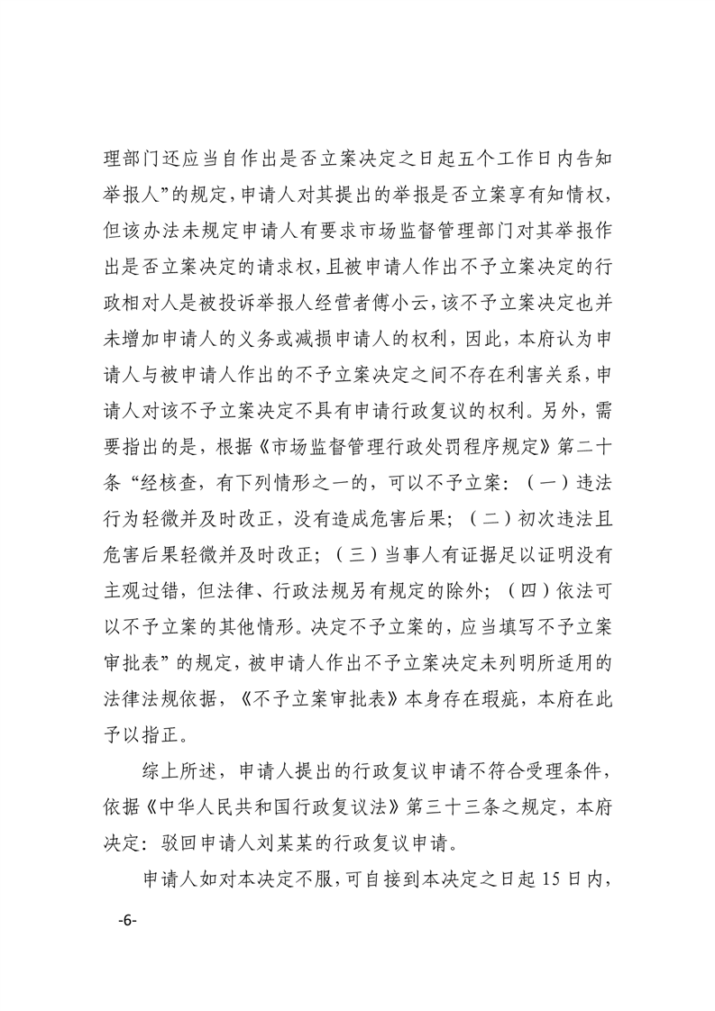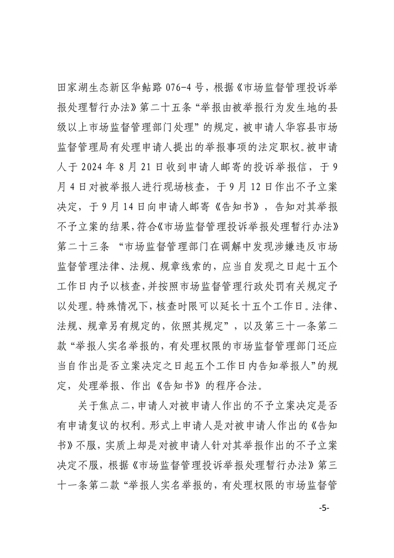 华府复决字〔2024〕38号 申请人刘某某对被申请人华容县市场监督管理局针对其提出的举报事项作出的《告知书》不服一案行政复议决定书