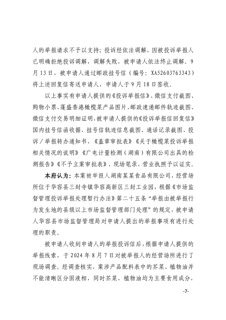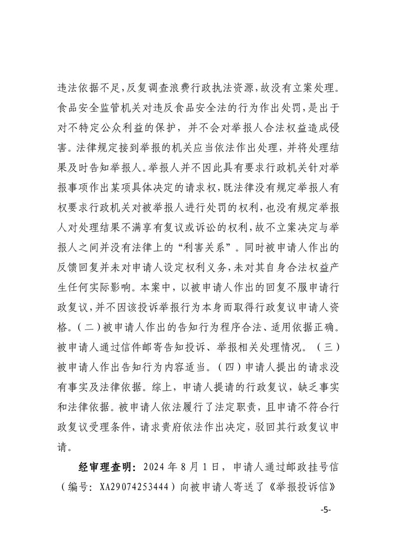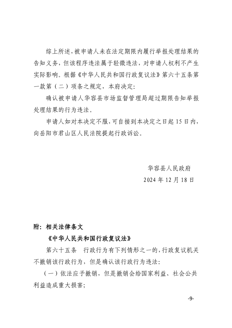华府复决字〔2024〕39号申请人张某某对被申请人华容县市场监督管理局作出的不予立案决定不服一案行政复议决定书