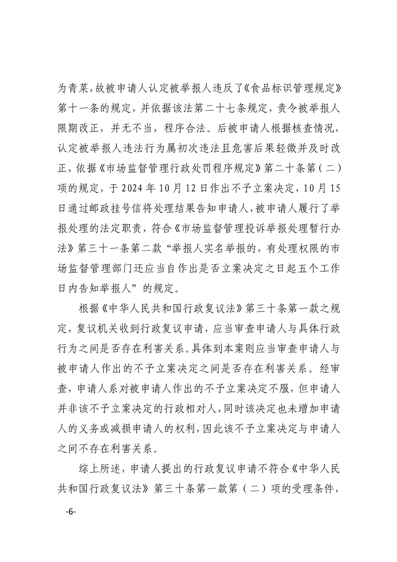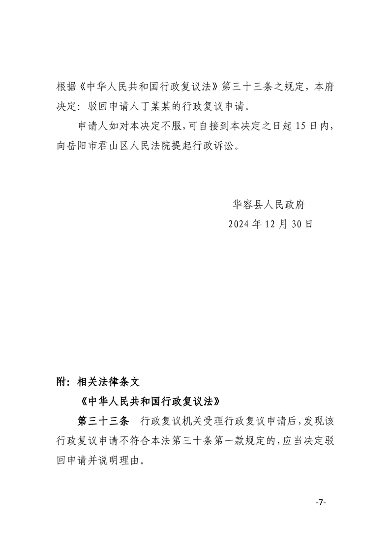 华府复决字〔2024〕41号申请人丁某某对被申请人华容县市场监督管理局作出的不予立案答复不服一案行政复议决定书