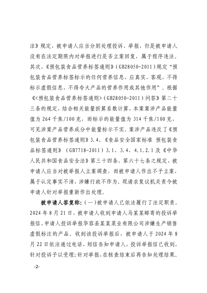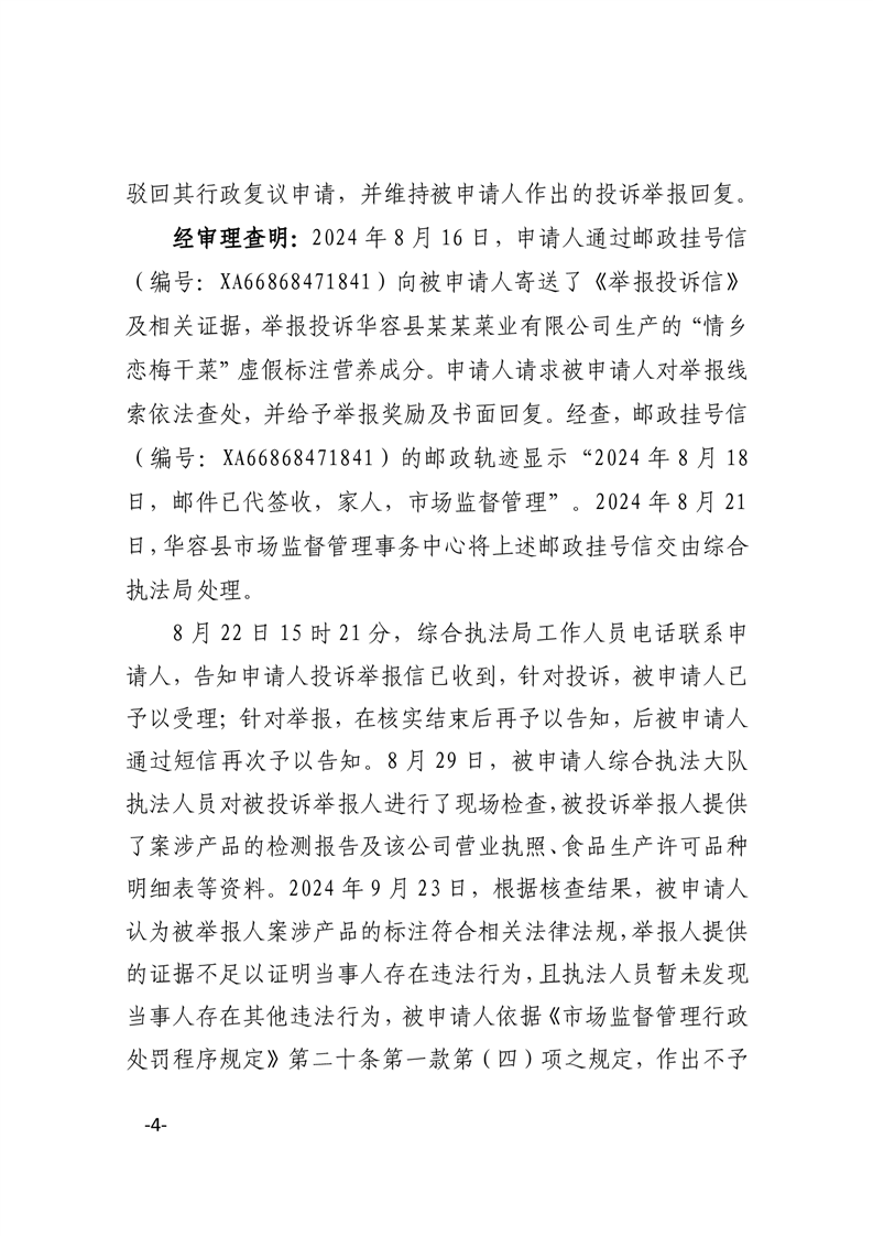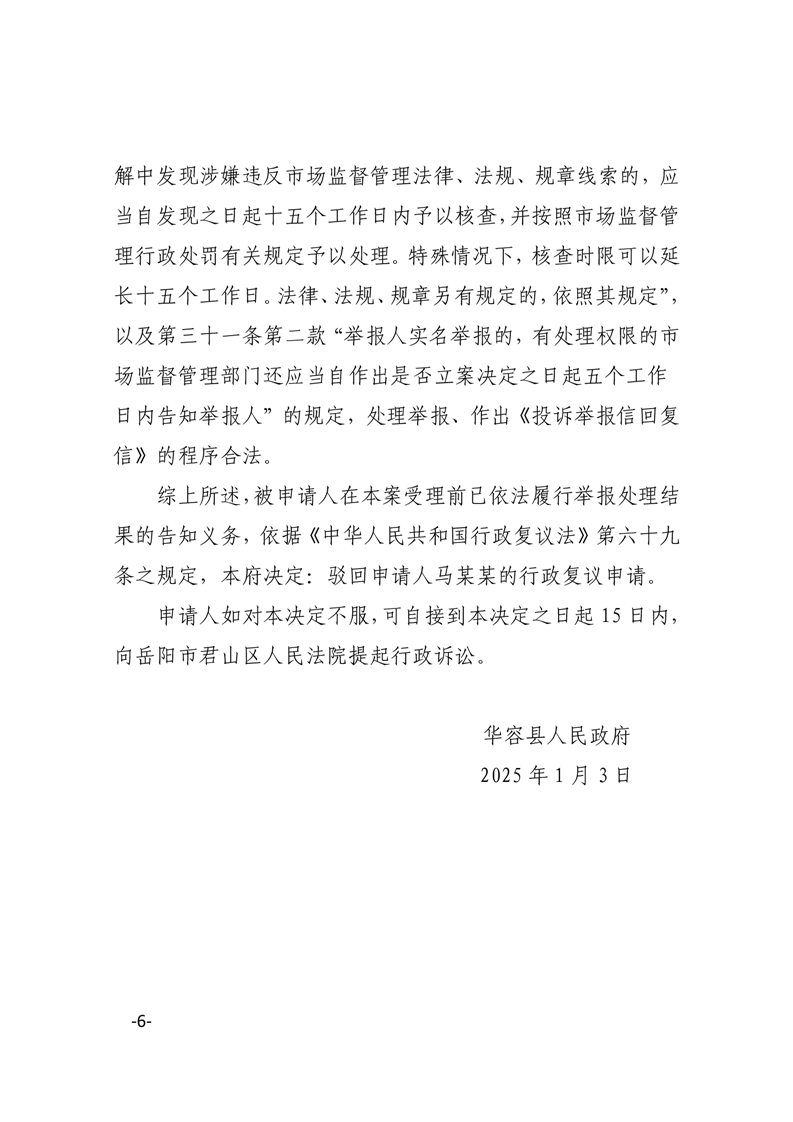 华府复决字〔2024〕44号申请人马某某不服被申请人华容县市场监督管理局未在法定期限内针对举报告知是否立案一案行政复议决定书