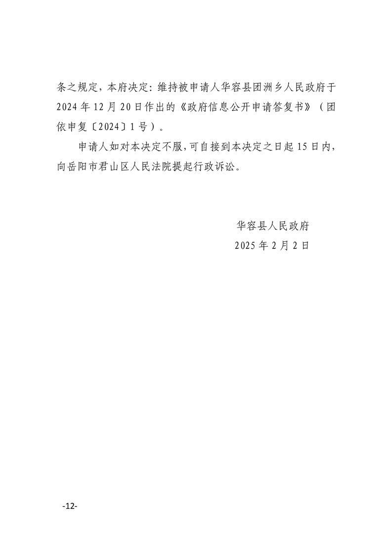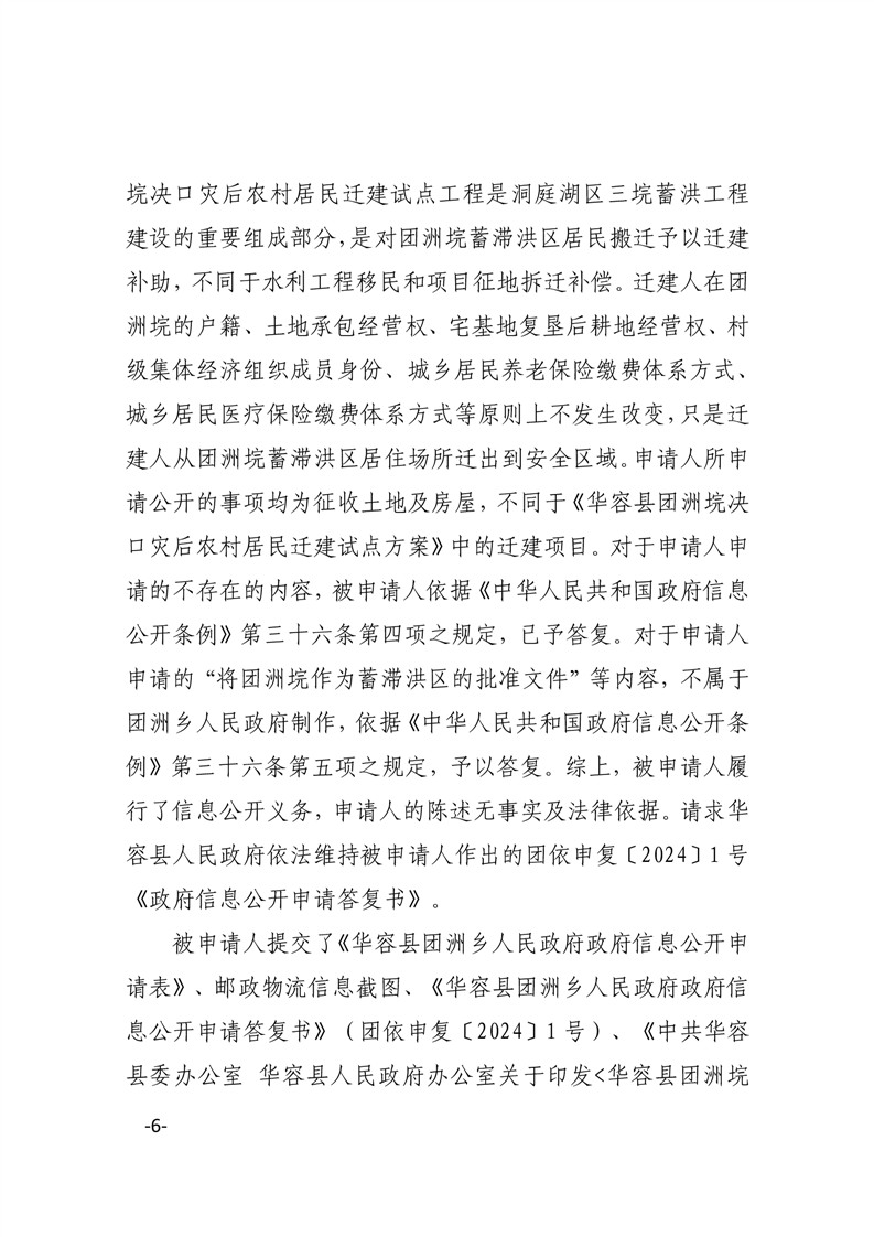 华府复决字〔2024〕59号贺某某不服华容县团洲乡人民政府作出的《政府信息公开申请答复书》一案行政复议决定书