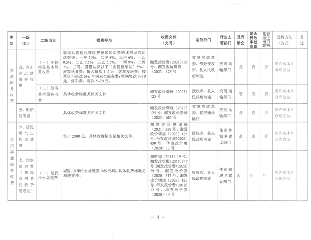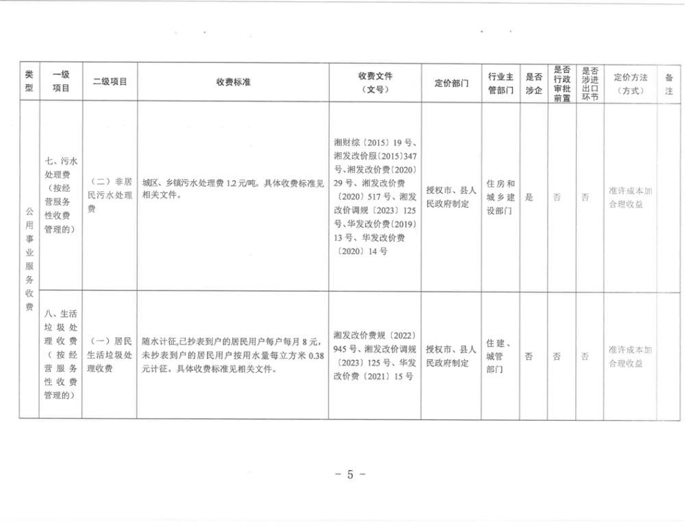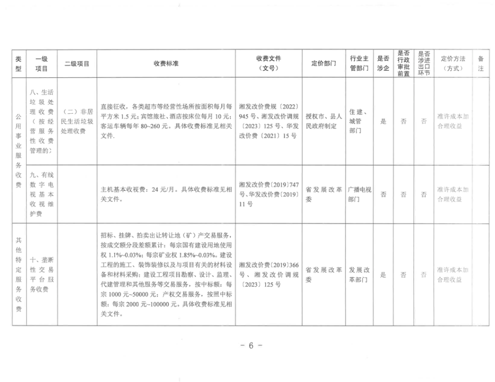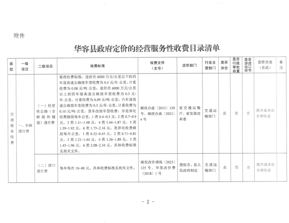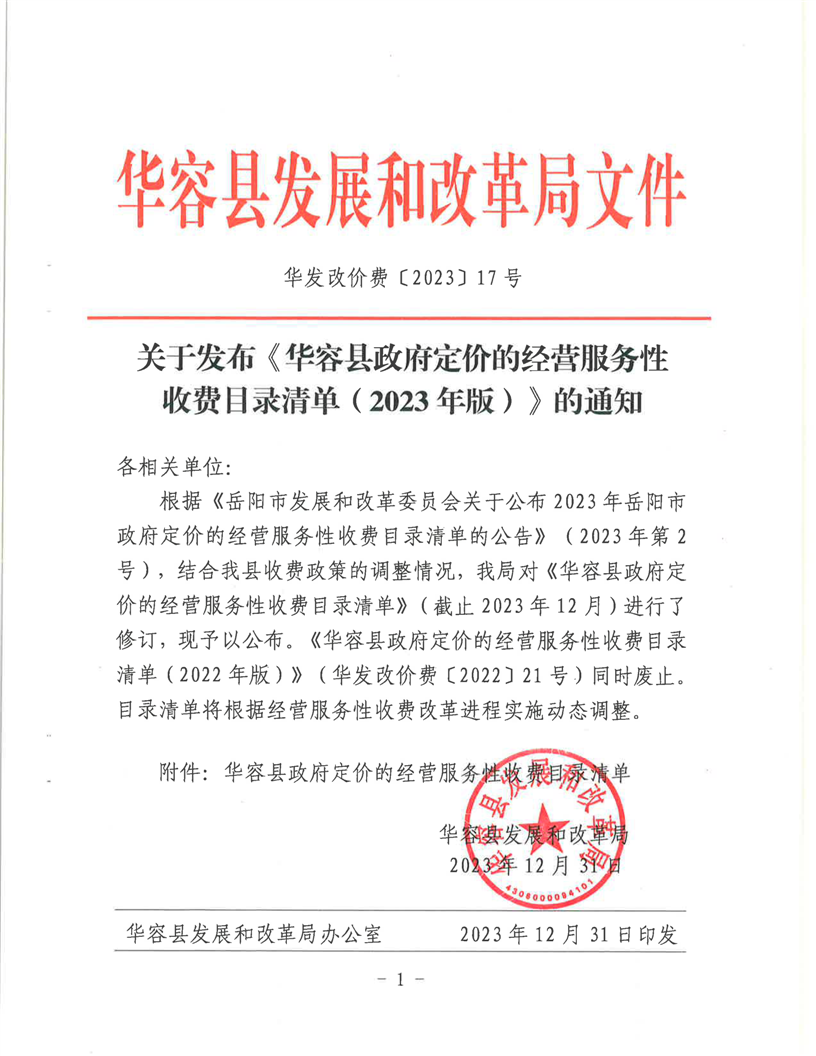 2023年华容县政府定价的经营服务性收费目录清单